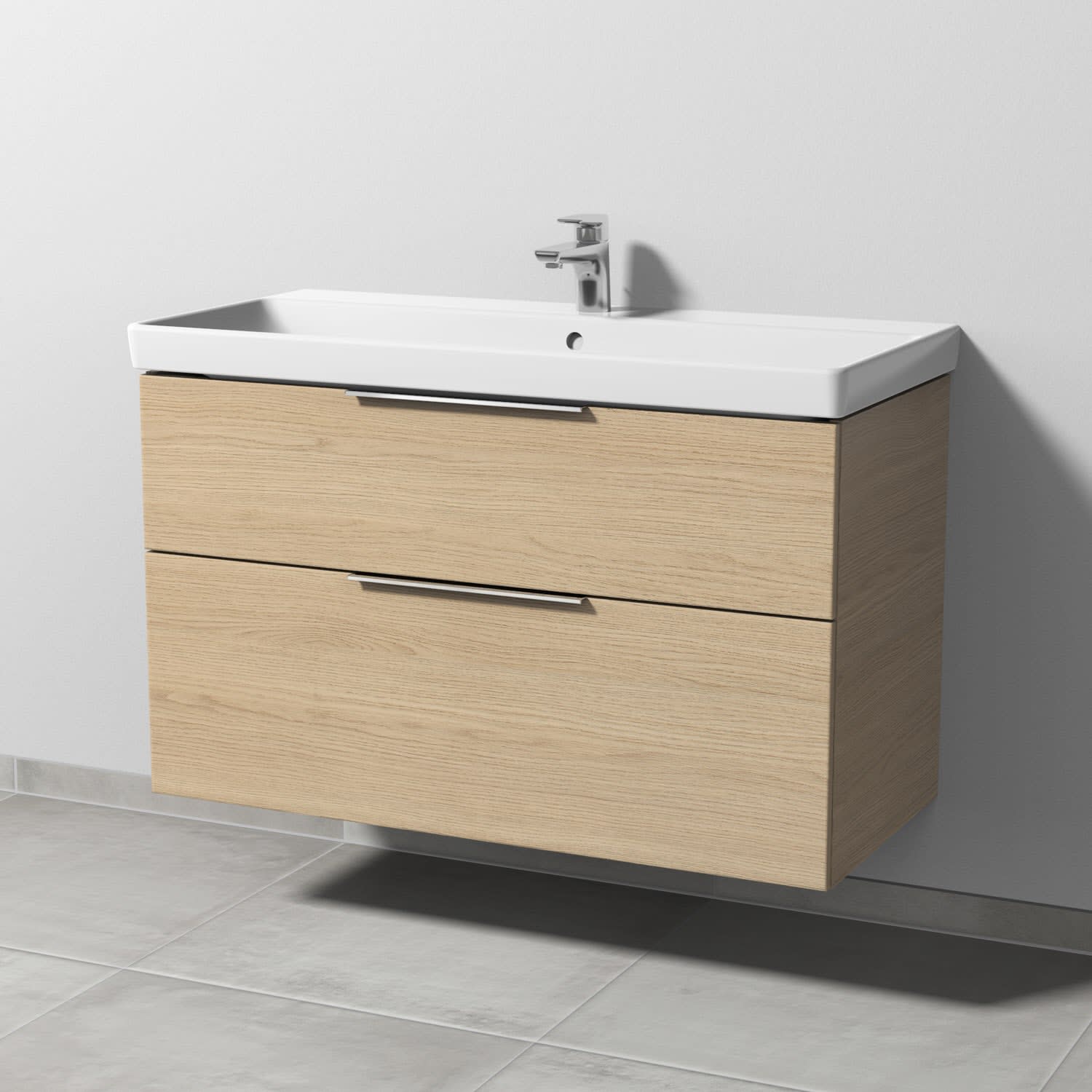 Sanipa 3way Waschtischunterbau für Keramik-Waschtisch Avento 100 cm, 2 Auszüge mit Aufsatzgriff