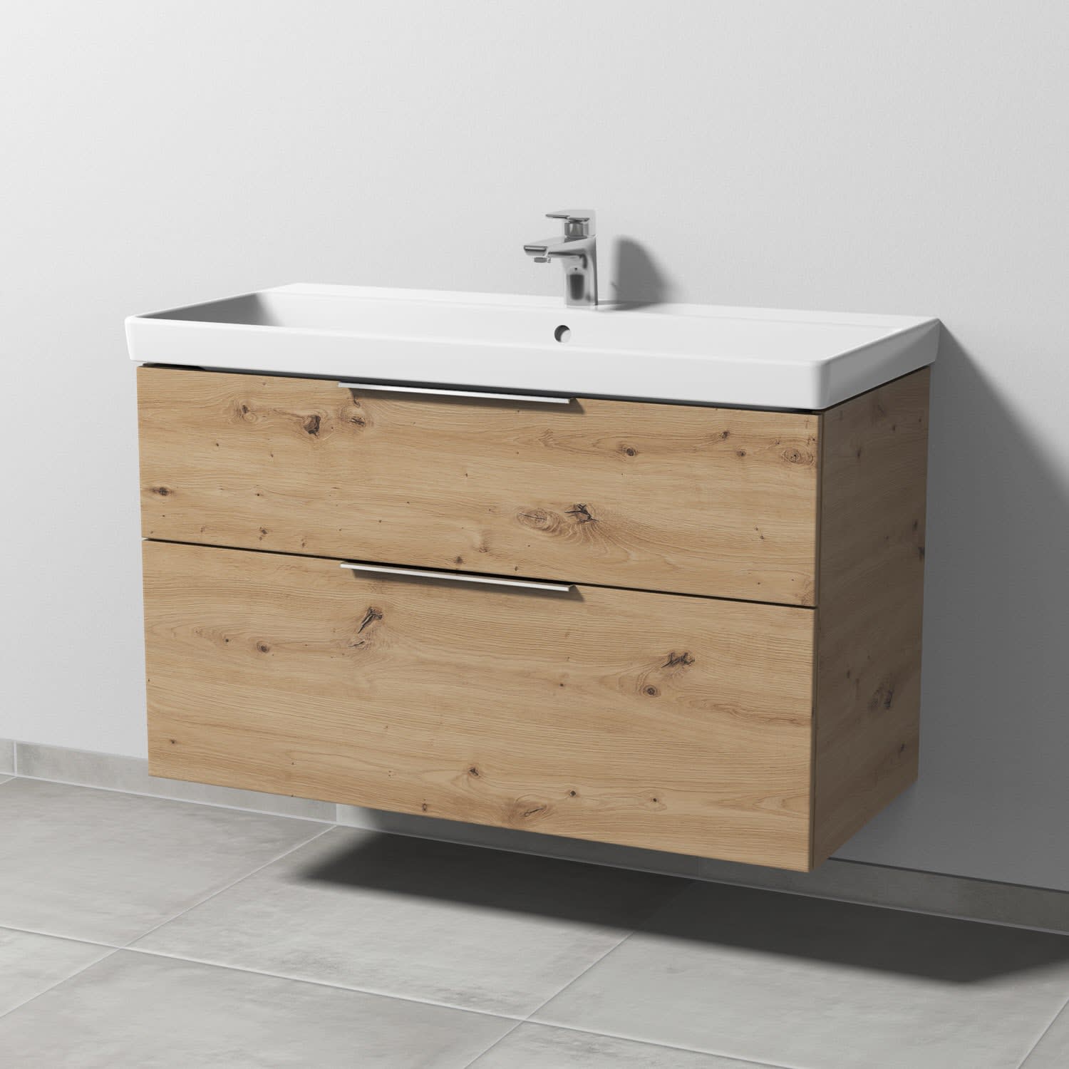 Sanipa 3way Waschtischunterbau für Keramik-Waschtisch Avento 100 cm, 2 Auszüge mit Aufsatzgriff