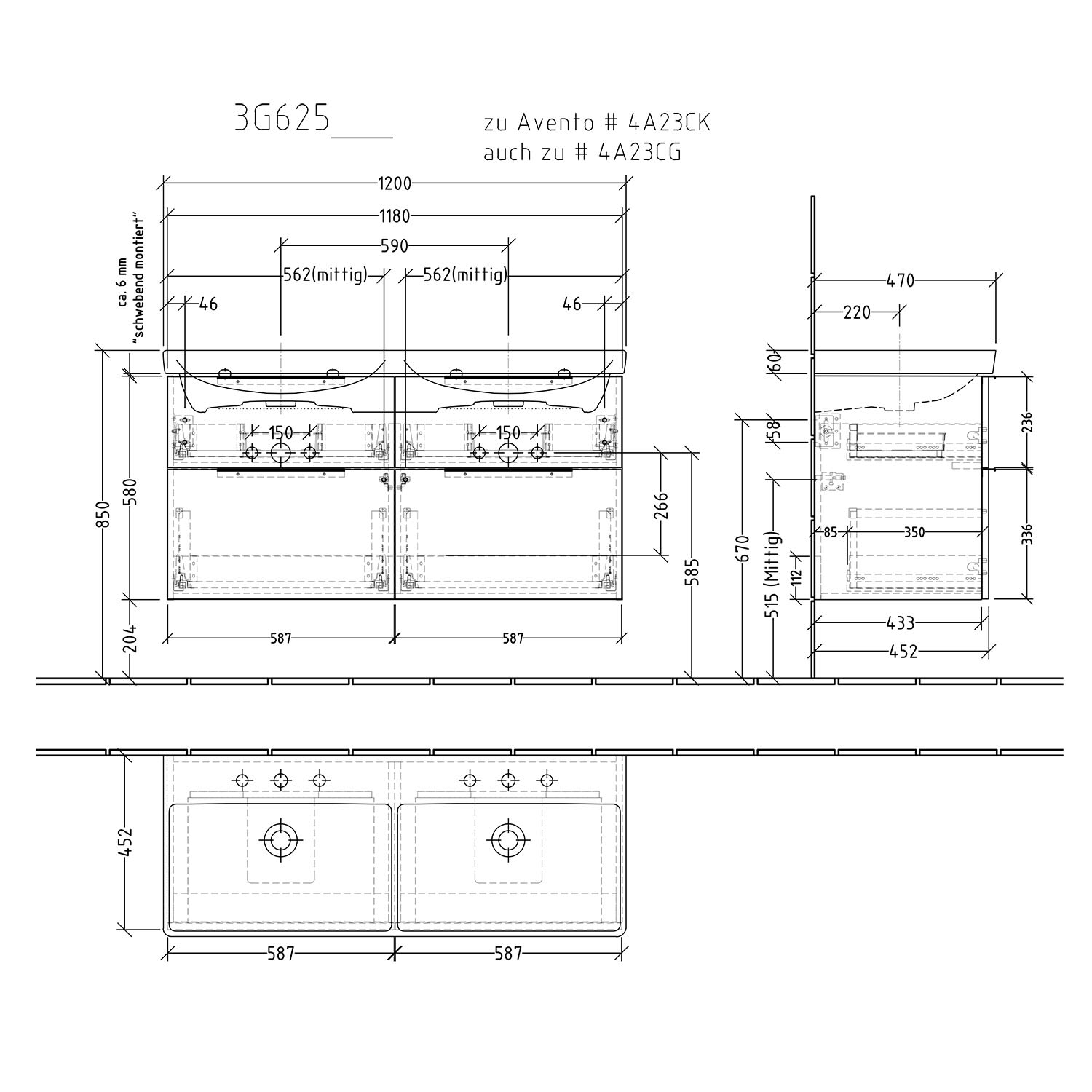 - Breite: 120 cm, Modell-Nr. 4A23CK und 4A23CG