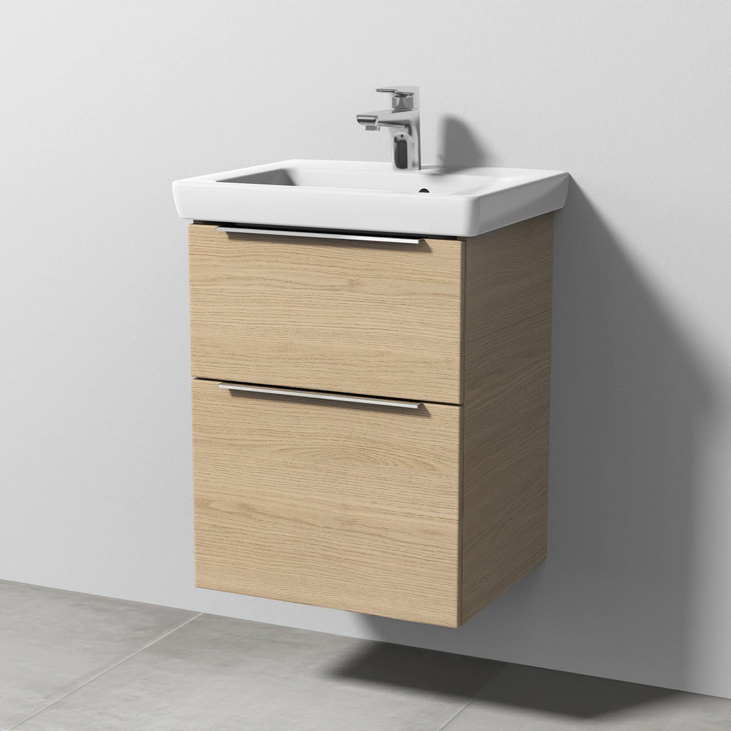 Sanipa 3way Waschtischunterbau für Keramik-Waschtisch Subway 2.0 50 cm, 2 Auszüge mit Aufsatzgriff