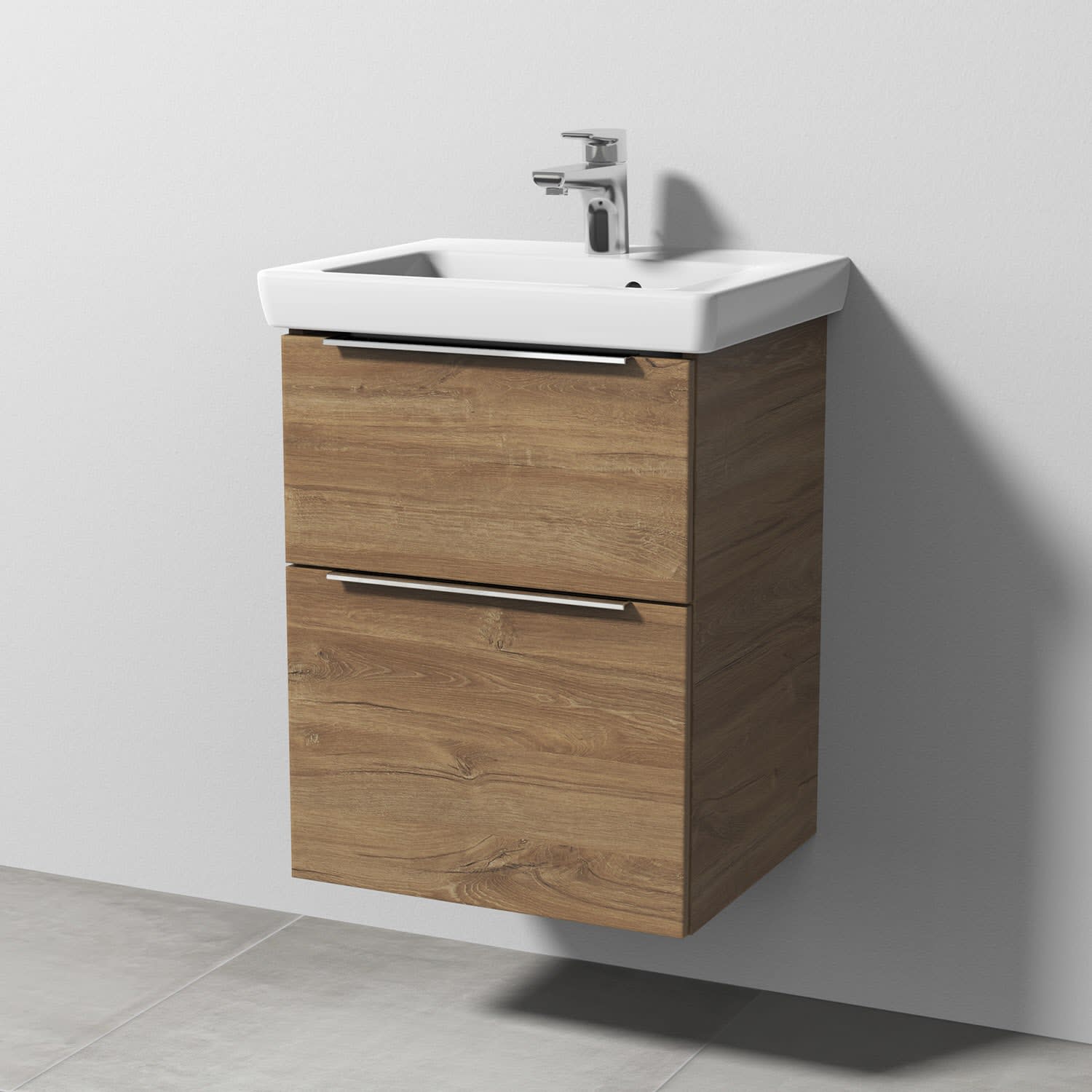 Sanipa 3way Waschtischunterbau für Keramik-Waschtisch Subway 2.0 50 cm, 2 Auszüge mit Aufsatzgriff