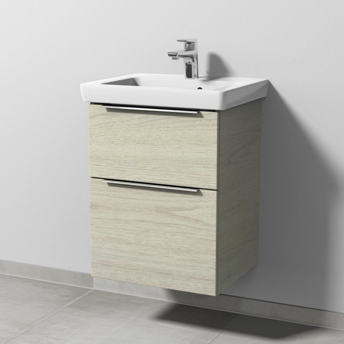 Sanipa 3way Waschtischunterbau für Keramik-Waschtisch Subway 2.0 50 cm, 2 Auszüge mit Aufsatzgriff