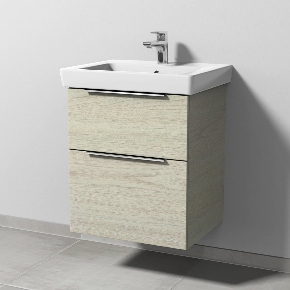 Sanipa 3way Waschtischunterbau für Keramik-Waschtisch Subway 2.0 55 cm, 2 Auszüge mit Aufsatzgriff