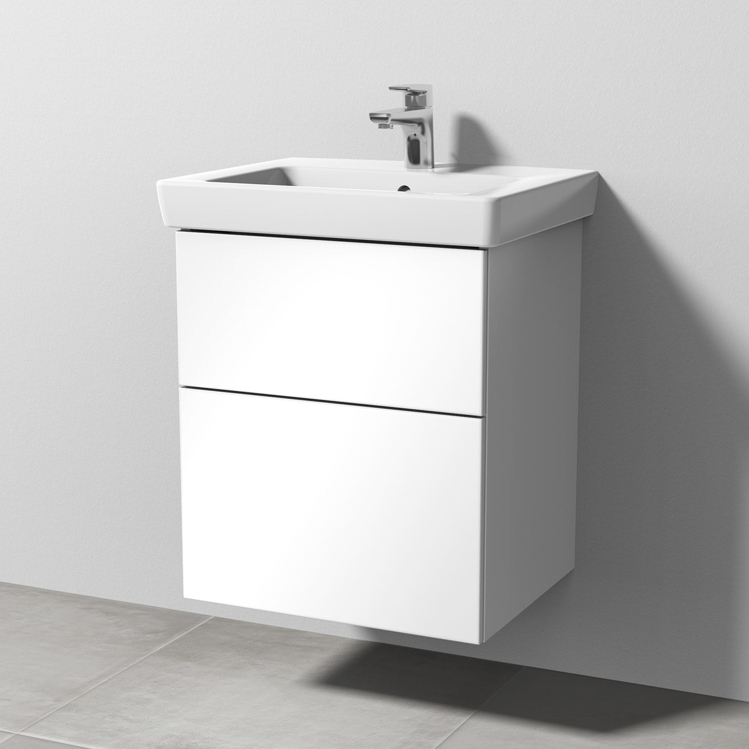 Sanipa 3way Waschtischunterbau für Keramik-Waschtisch Subway 2.0 55 cm, 2 Auszüge mit Push to open