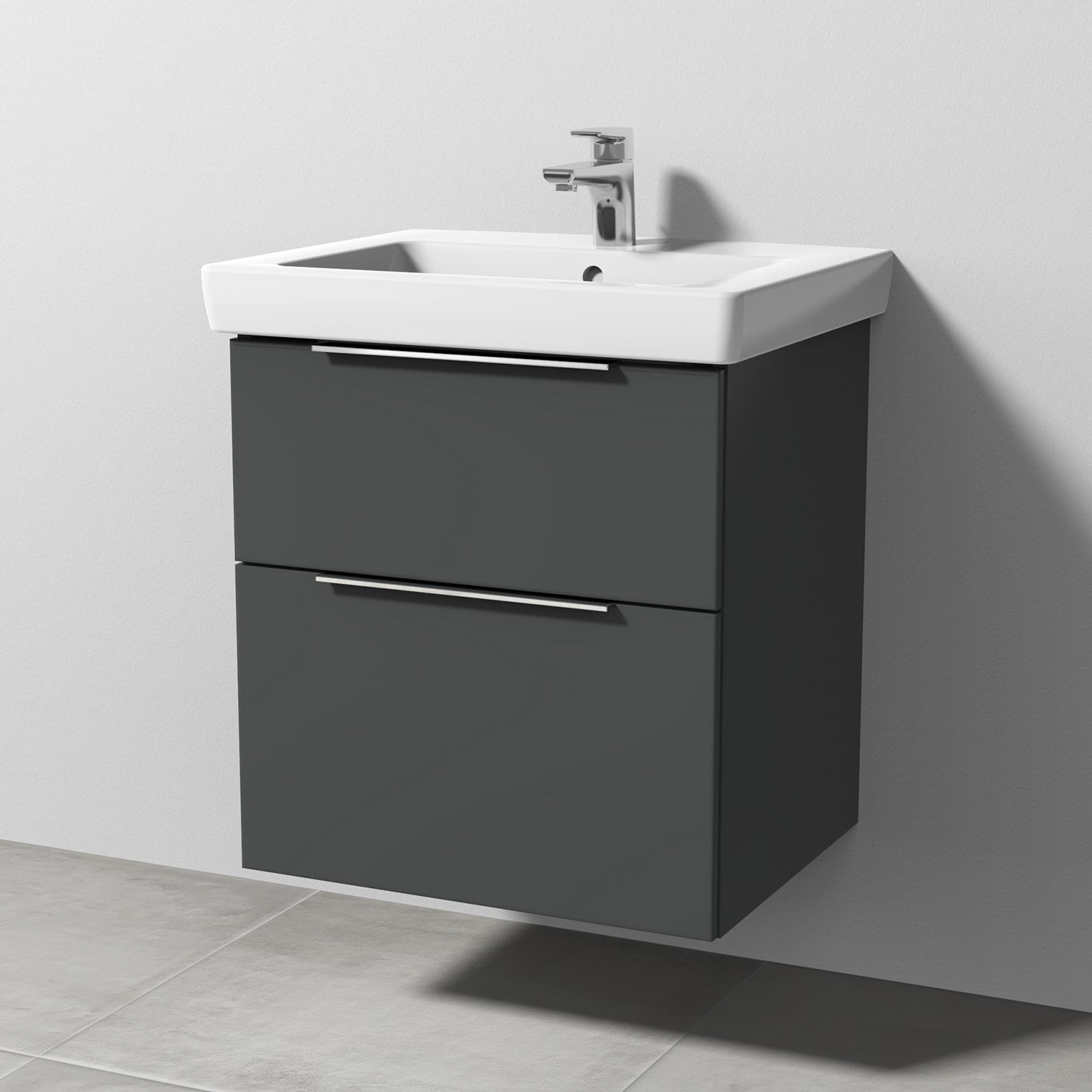 Sanipa 3way Waschtischunterbau für Keramik-Waschtisch Subway 2.0 60 cm, 2 Auszüge mit Aufsatzgriff