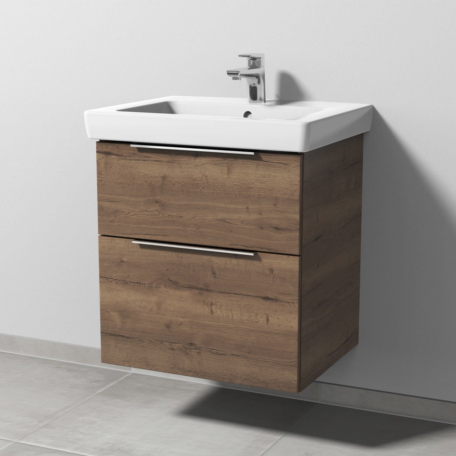 Sanipa 3way Waschtischunterbau für Keramik-Waschtisch Subway 2.0 60 cm, 2 Auszüge mit Aufsatzgriff