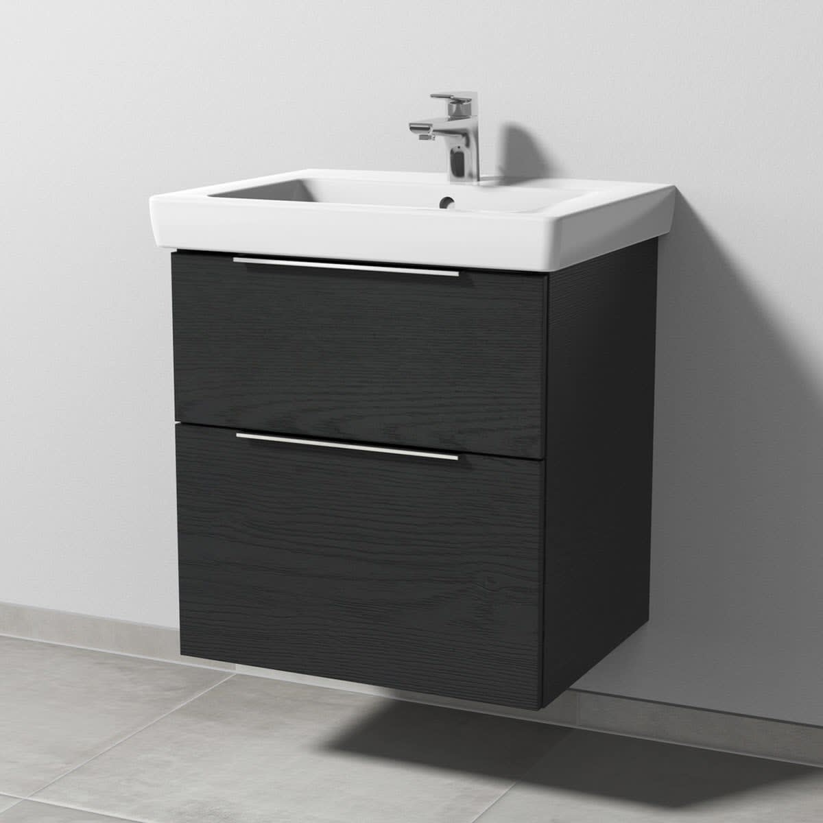 Sanipa 3way Waschtischunterbau für Keramik-Waschtisch Subway 2.0 60 cm, 2 Auszüge mit Aufsatzgriff