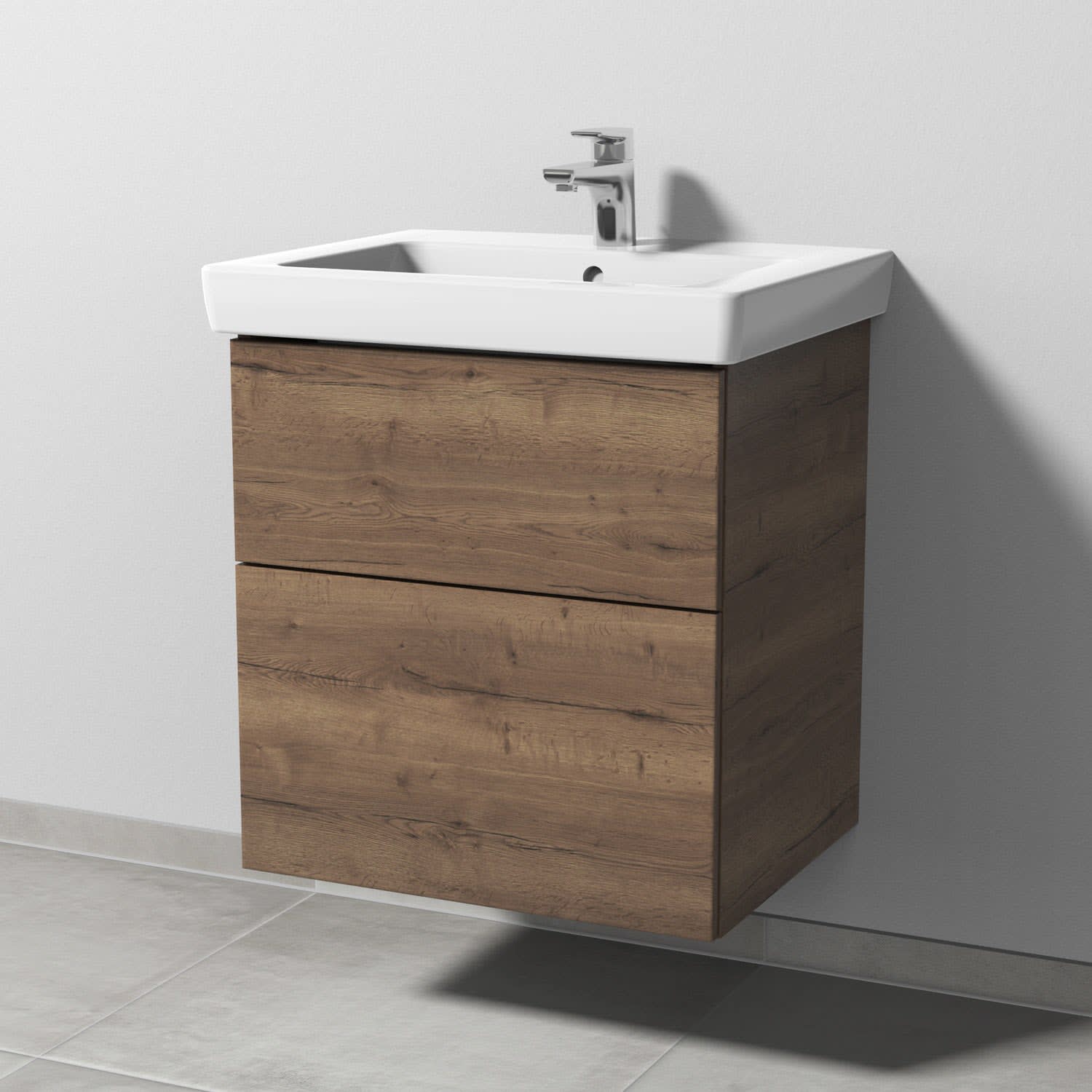 Sanipa 3way Waschtischunterbau für Keramik-Waschtisch Subway 2.0 60 cm, 2 Auszüge mit Push to open