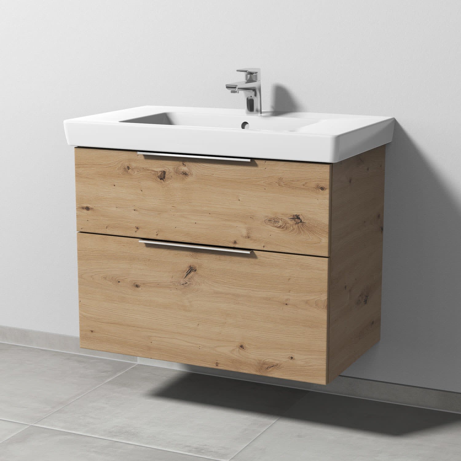 Sanipa 3way Waschtischunterbau für Keramik-Waschtisch Subway 2.0 80 cm, 2 Auszüge mit Aufsatzgriff
