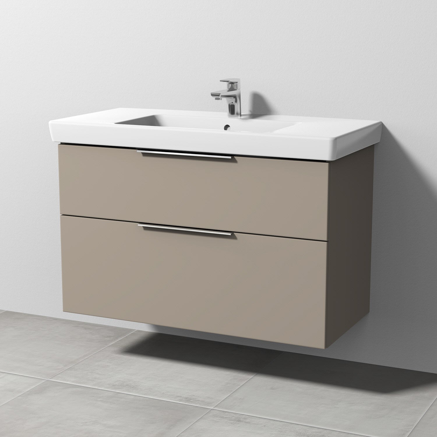 Sanipa 3way Waschtischunterbau für Keramik-Waschtisch Subway 2.0 100 cm, 2 Auszüge mit Aufsatzgriff