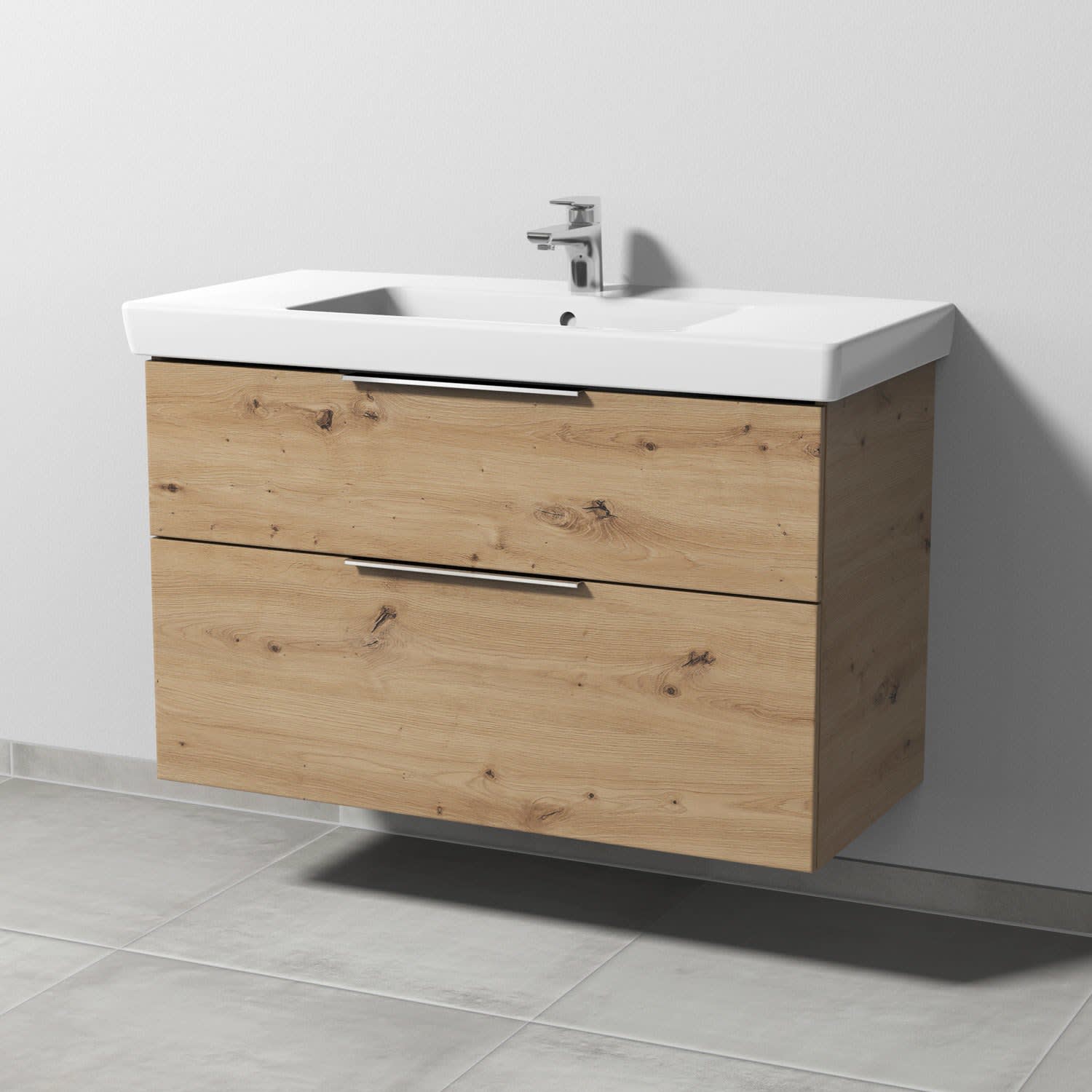 Sanipa 3way Waschtischunterbau für Keramik-Waschtisch Subway 2.0 100 cm, 2 Auszüge mit Aufsatzgriff