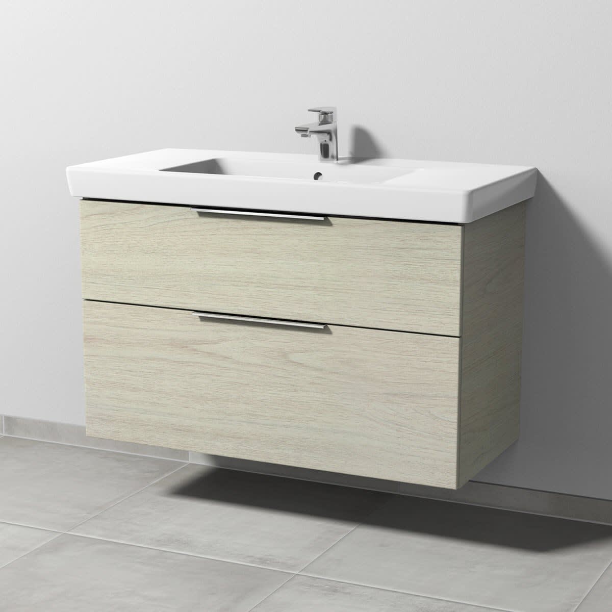 Sanipa 3way Waschtischunterbau für Keramik-Waschtisch Subway 2.0 100 cm, 2 Auszüge mit Aufsatzgriff