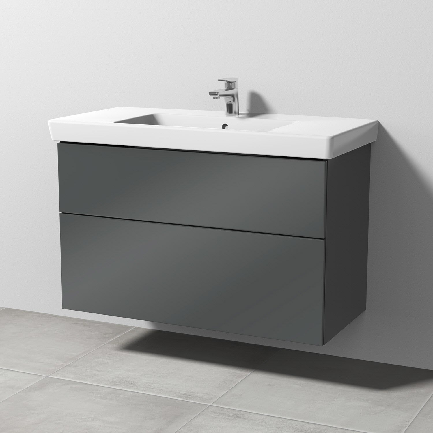 Sanipa 3way Waschtischunterbau für Keramik-Waschtisch Subway 2.0 100 cm, 2 Auszüge mit Push to open