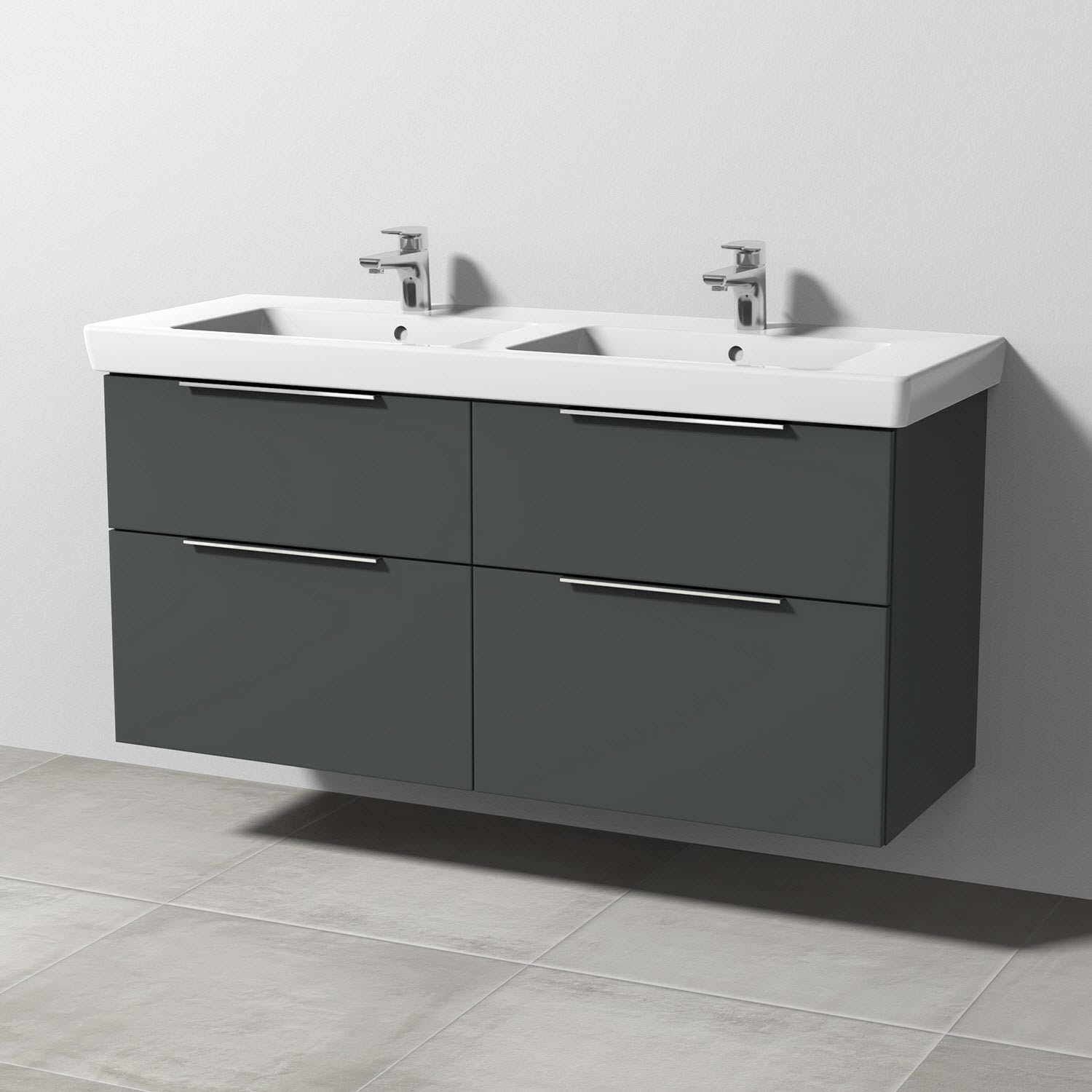 Sanipa 3way Waschtischunterbau für Keramik-Doppelwaschtisch Subway 2.0 130 cm, 4 Auszüge mit Aufsatzgriff