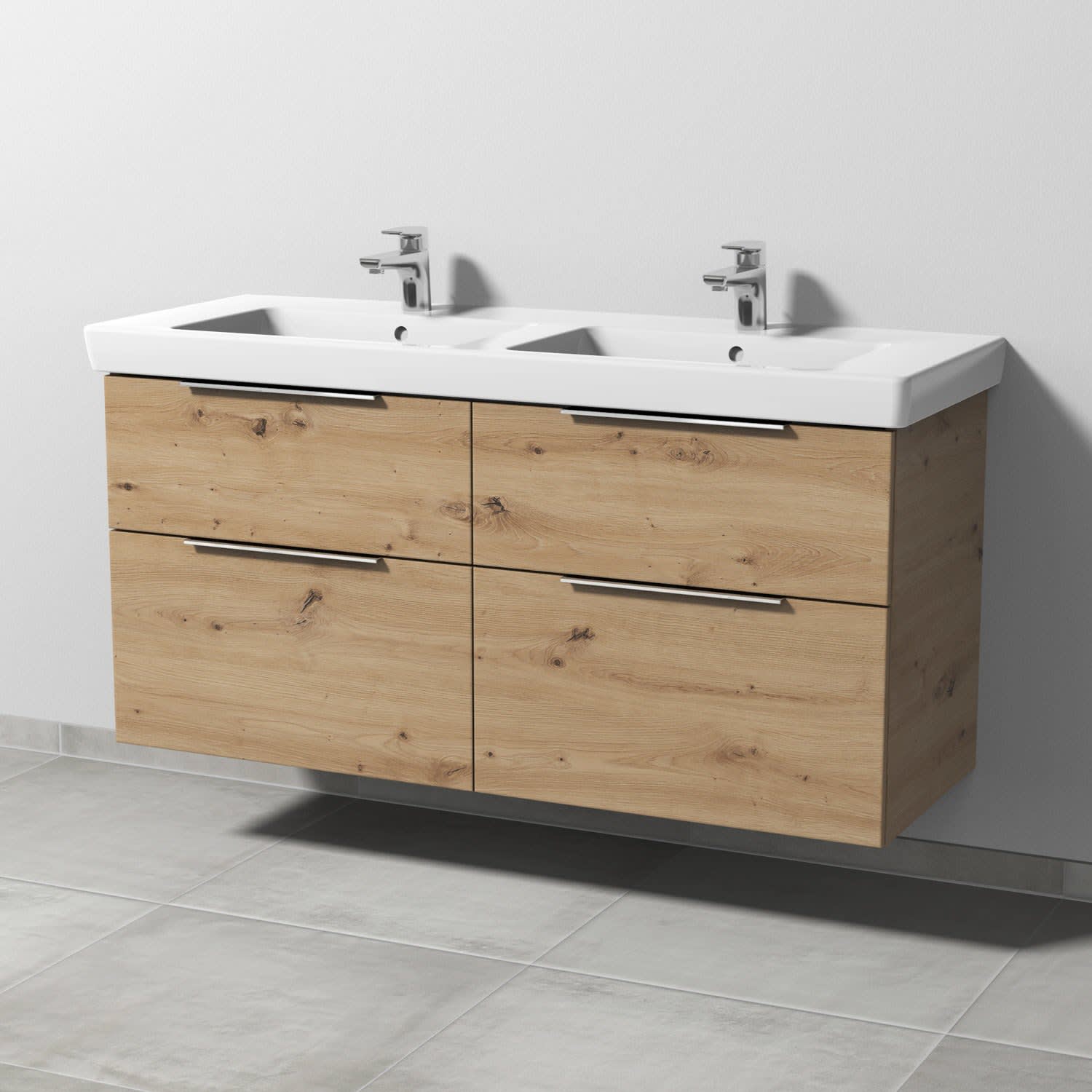 Sanipa 3way Waschtischunterbau für Keramik-Doppelwaschtisch Subway 2.0 130 cm, 4 Auszüge mit Aufsatzgriff