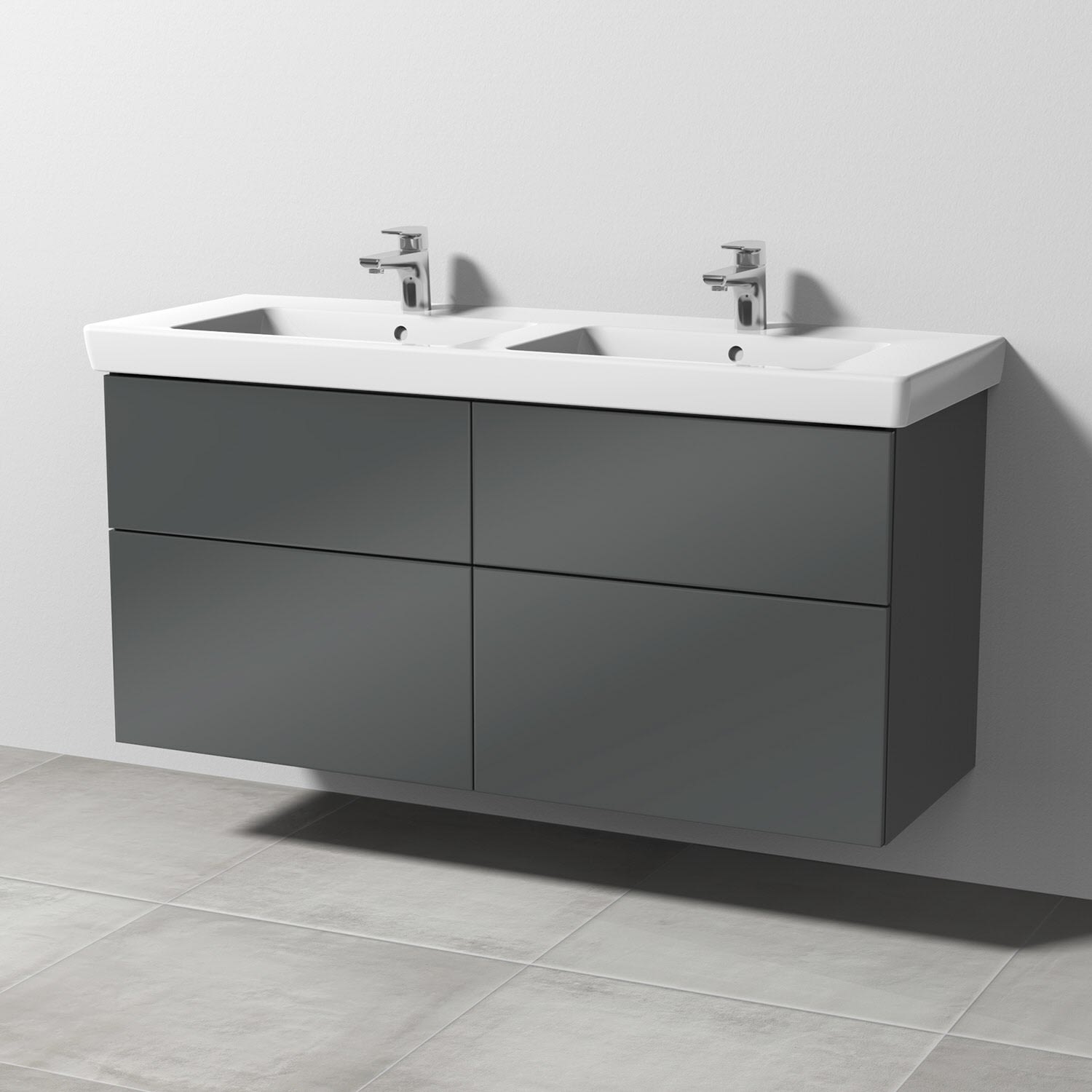 Sanipa 3way Waschtischunterbau für Keramik-Doppelwaschtisch Subway 2.0 130 cm, 4 Auszüge mit Push to open