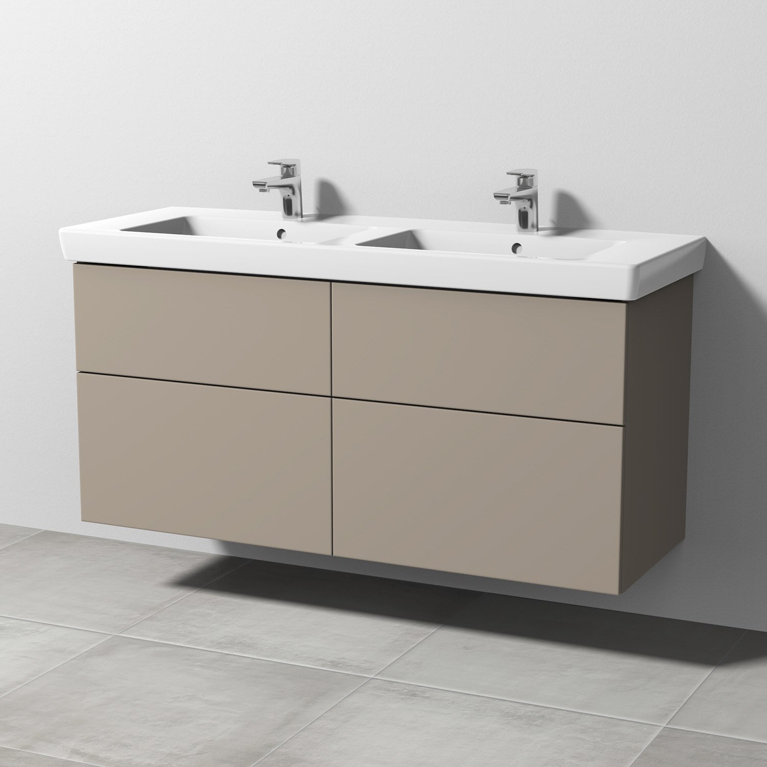 Sanipa 3way Waschtischunterbau für Keramik-Doppelwaschtisch Subway 2.0 130 cm, 4 Auszüge mit Push to open