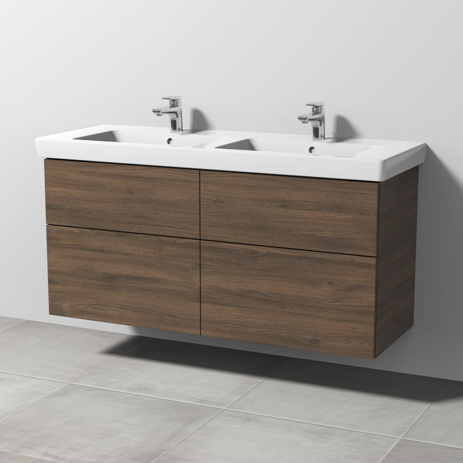 Sanipa 3way Waschtischunterbau für Keramik-Doppelwaschtisch Subway 2.0 130 cm, 4 Auszüge mit Push to open