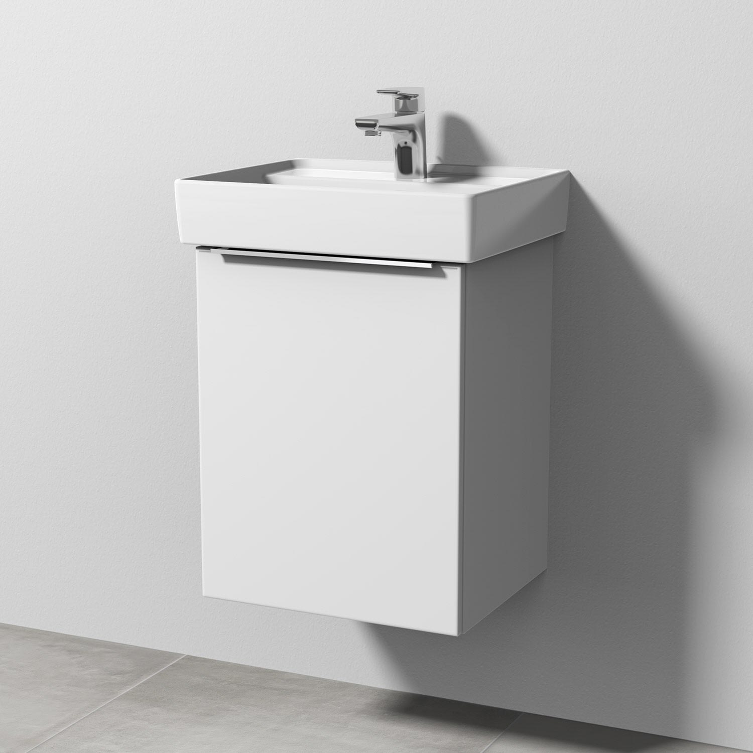 Sanipa 3way Waschtischunterbau für Keramik-Waschtisch Collaro 45 cm, 1 Tür, Anschlag links, mit Aufsatzgriff