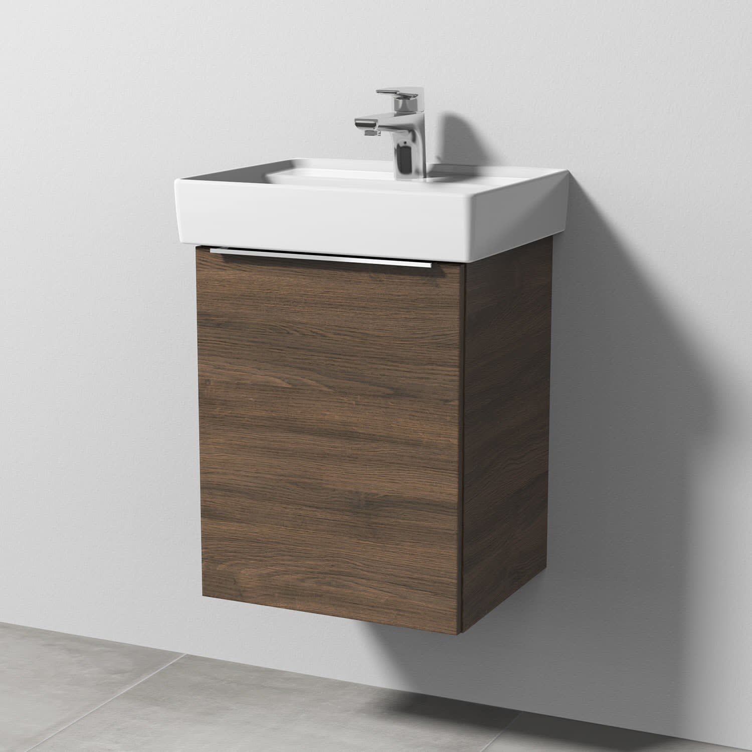 Sanipa 3way Waschtischunterbau für Keramik-Waschtisch Collaro 45 cm, 1 Tür, Anschlag links, mit Aufsatzgriff