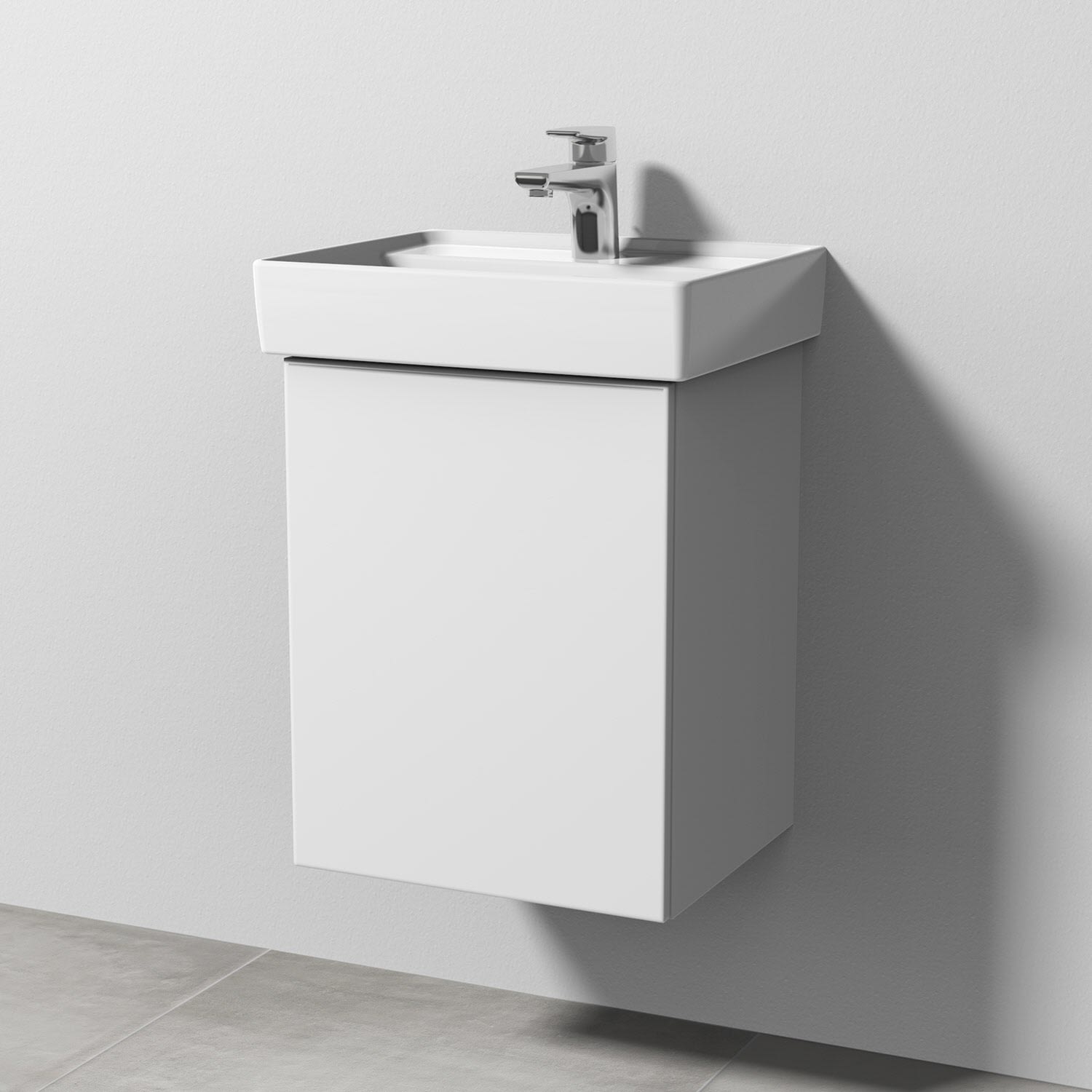 Sanipa 3way Waschtischunterbau für Keramik-Waschtisch Collaro 45 cm, 1 Tür, Anschlag links, mit Push to open