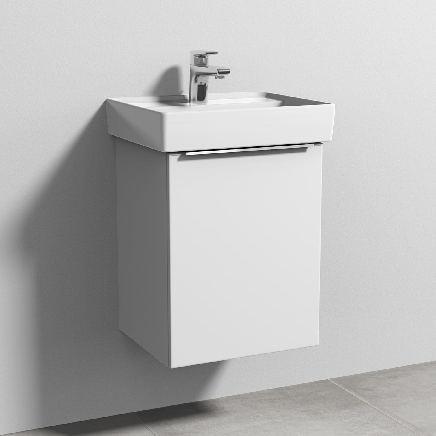 Sanipa 3way Waschtischunterbau für Keramik-Waschtisch Collaro 45 cm, 1 Tür, Anschlag rechts, mit Aufsatzgriff