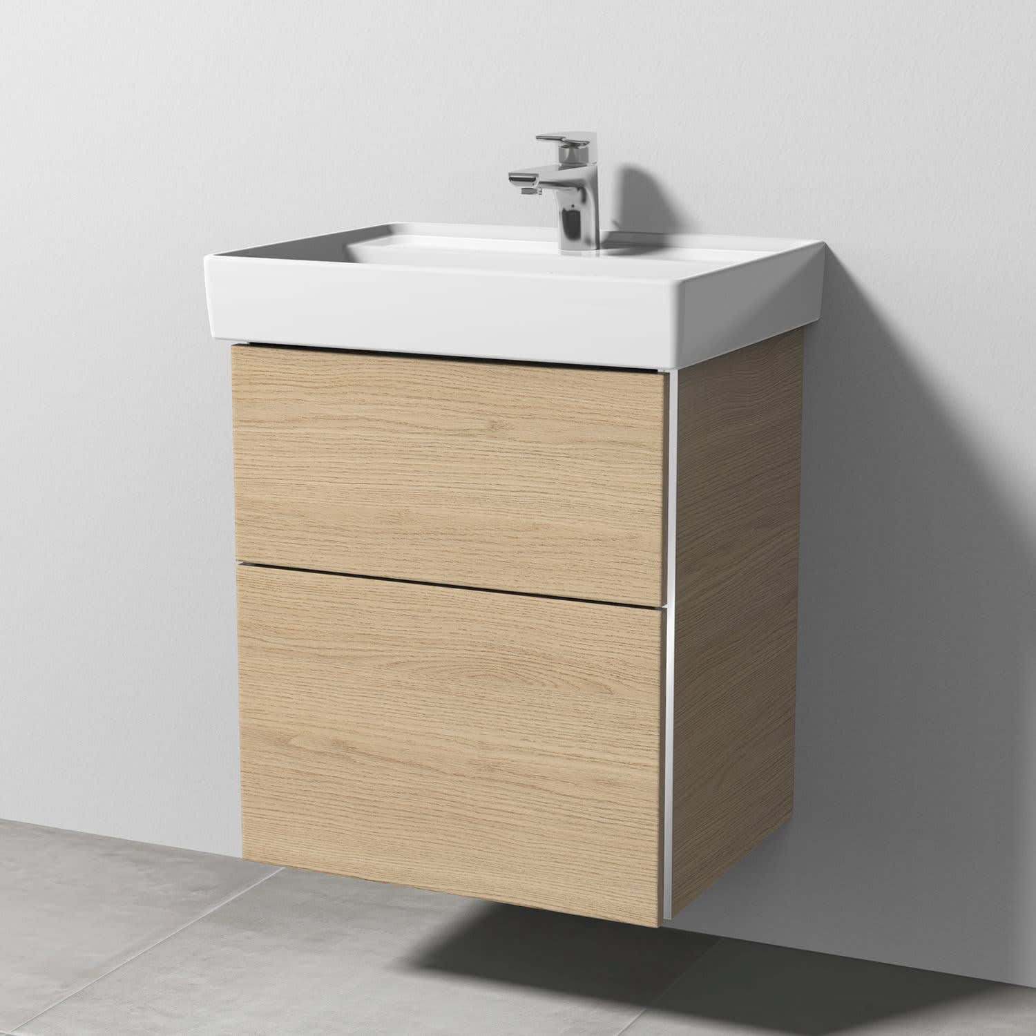 Sanipa 3way Waschtischunterbau für Keramik-Waschtisch Collaro 55 cm, 2 Auszüge mit Griffleisten