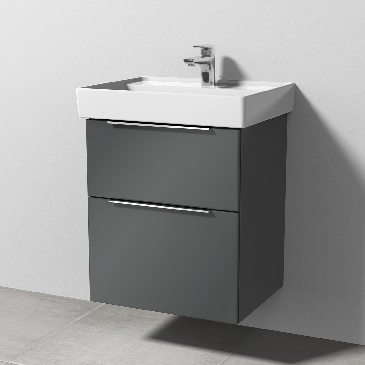 Sanipa 3way Waschtischunterbau für Keramik-Waschtisch Collaro 55 cm, 2 Auszüge mit Aufsatzgriff