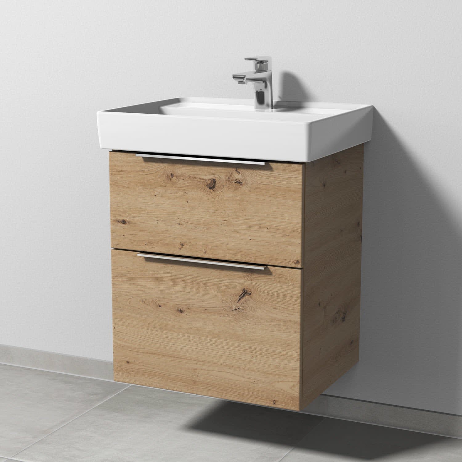 Sanipa 3way Waschtischunterbau für Keramik-Waschtisch Collaro 55 cm, 2 Auszüge mit Aufsatzgriff