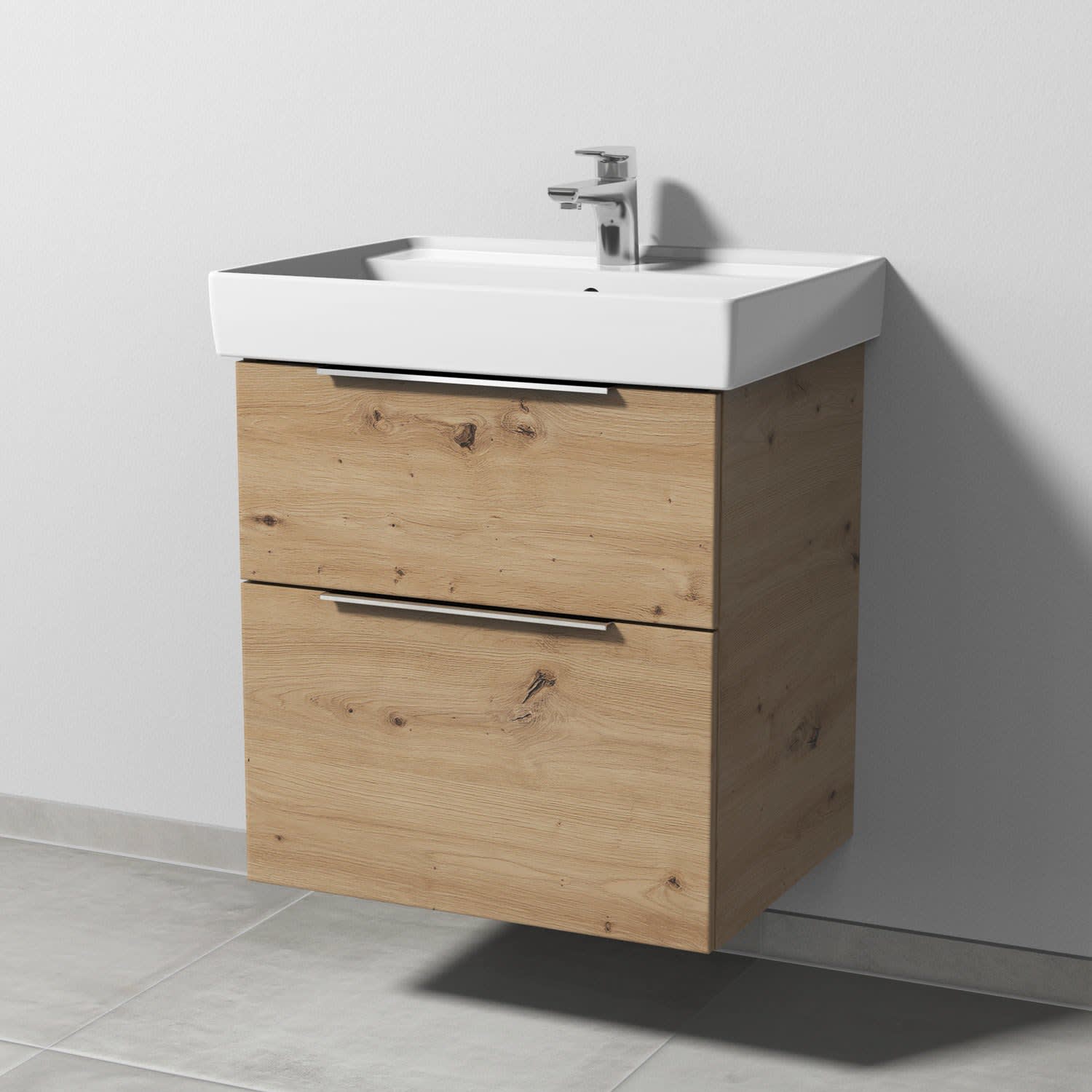 Sanipa 3way Waschtischunterbau für Keramik-Waschtisch Collaro 60 cm, 2 Auszüge mit Aufsatzgriff