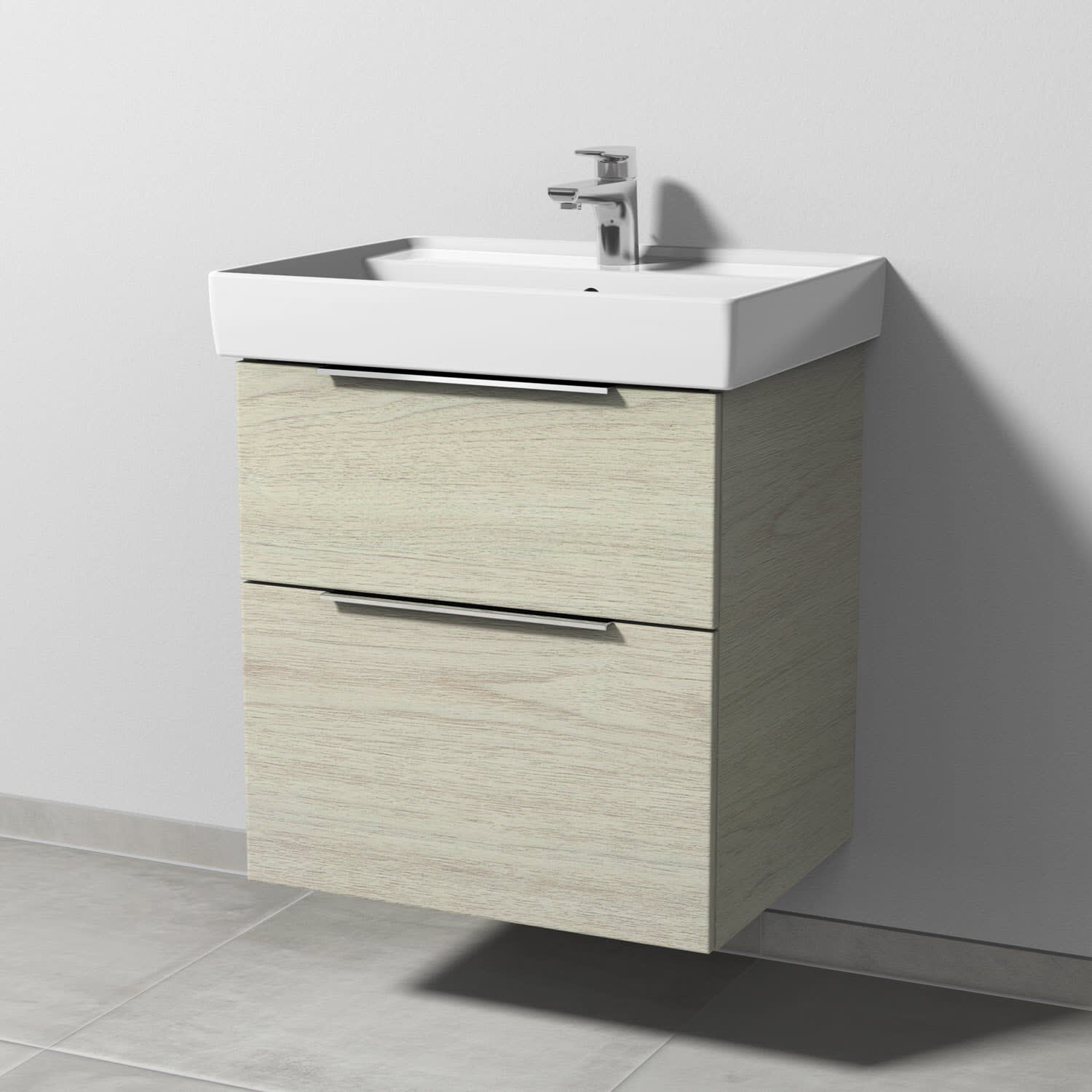 Sanipa 3way Waschtischunterbau für Keramik-Waschtisch Collaro 60 cm, 2 Auszüge mit Aufsatzgriff