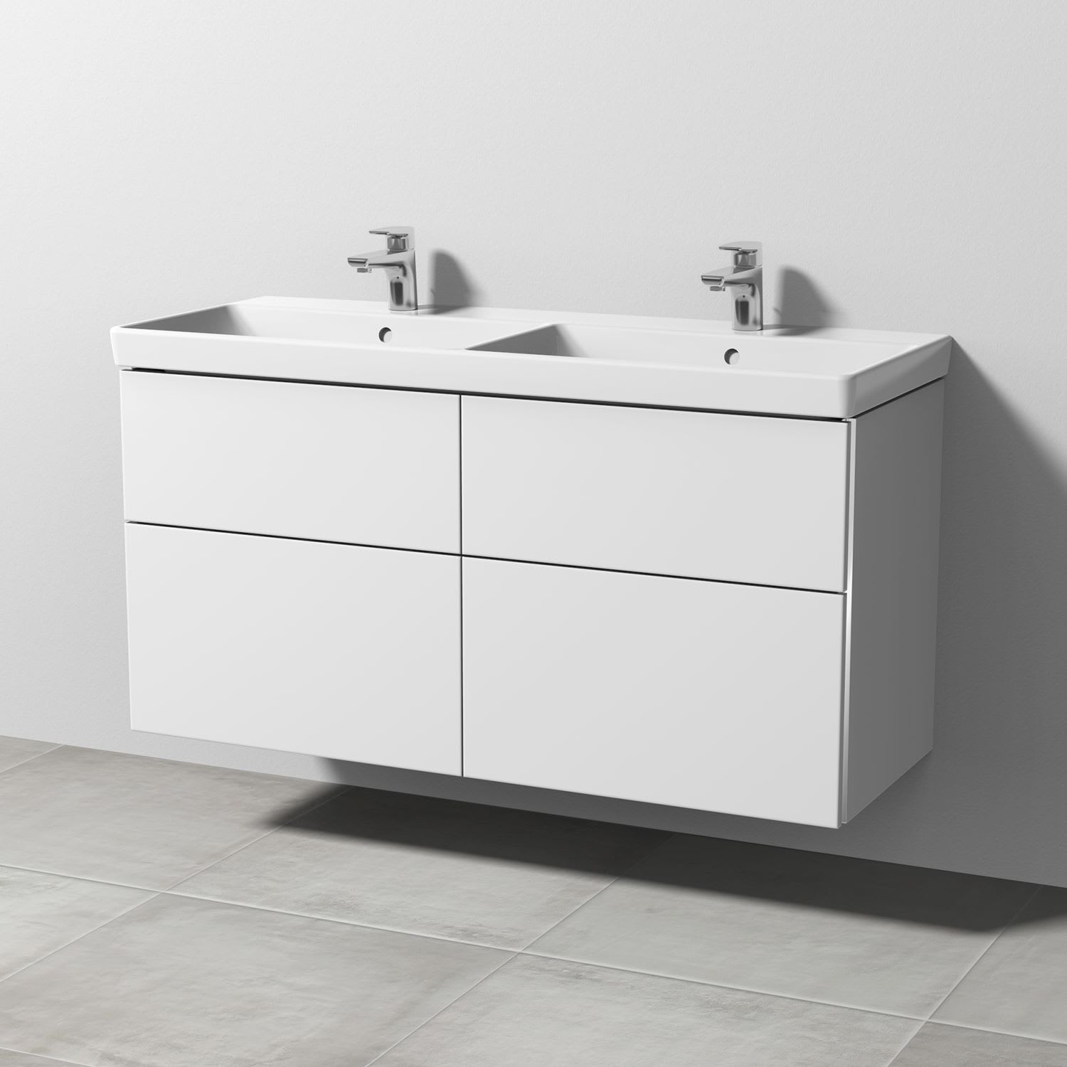 Sanipa 3way Waschtischunterbau für Keramik-Doppelwaschtisch Avento 120 cm, 4 Auszüge mit Griffleisten