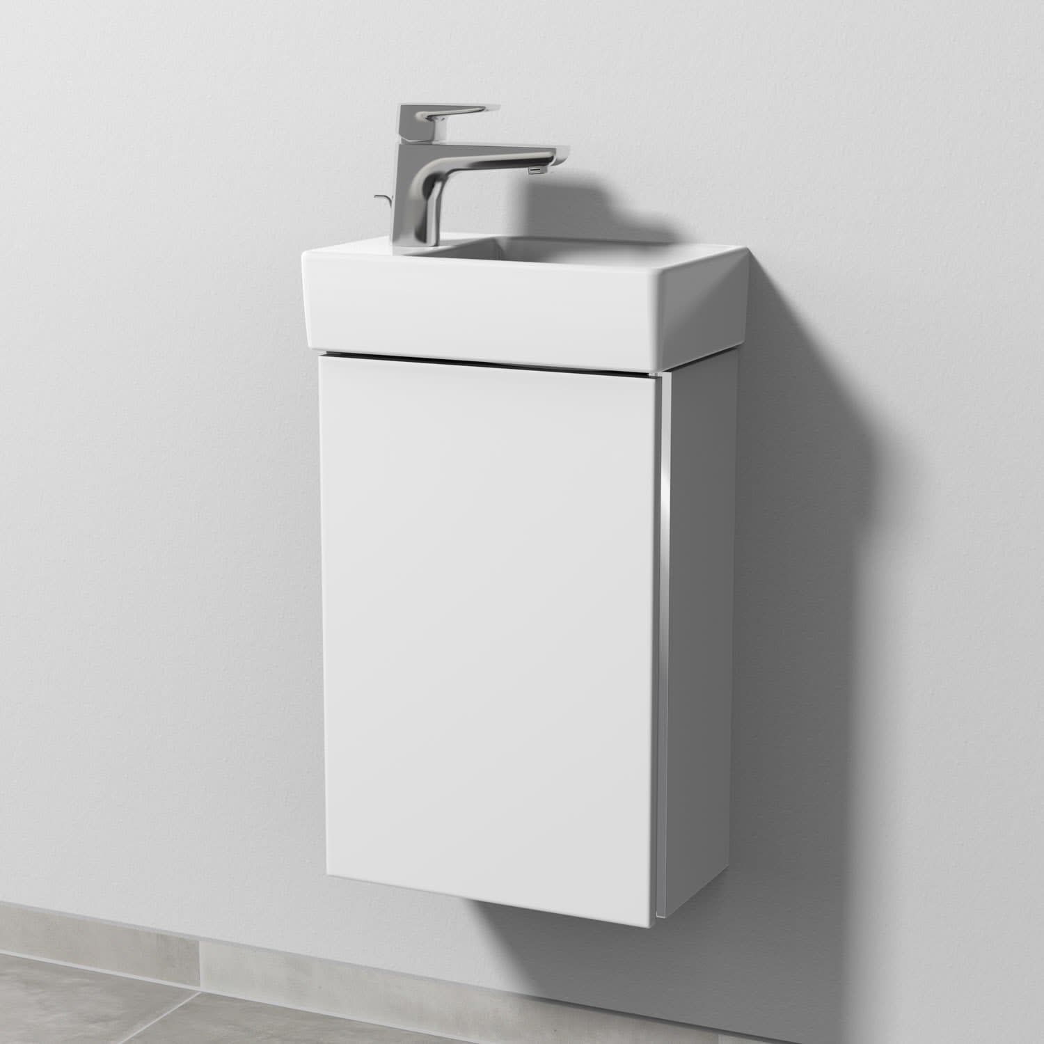Sanipa 3way Waschtischunterbau für Keramik-Waschtisch Avento 36 cm, 1 Tür, Anschlag links, mit Griffleiste