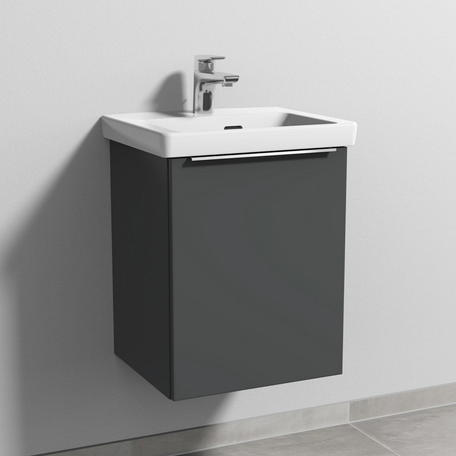 Sanipa 3way Waschtischunterbau für Keramik-Waschtisch Subway 3.0 45 cm, 1 Tür, Anschlag rechts, mit Aufsatzgriff