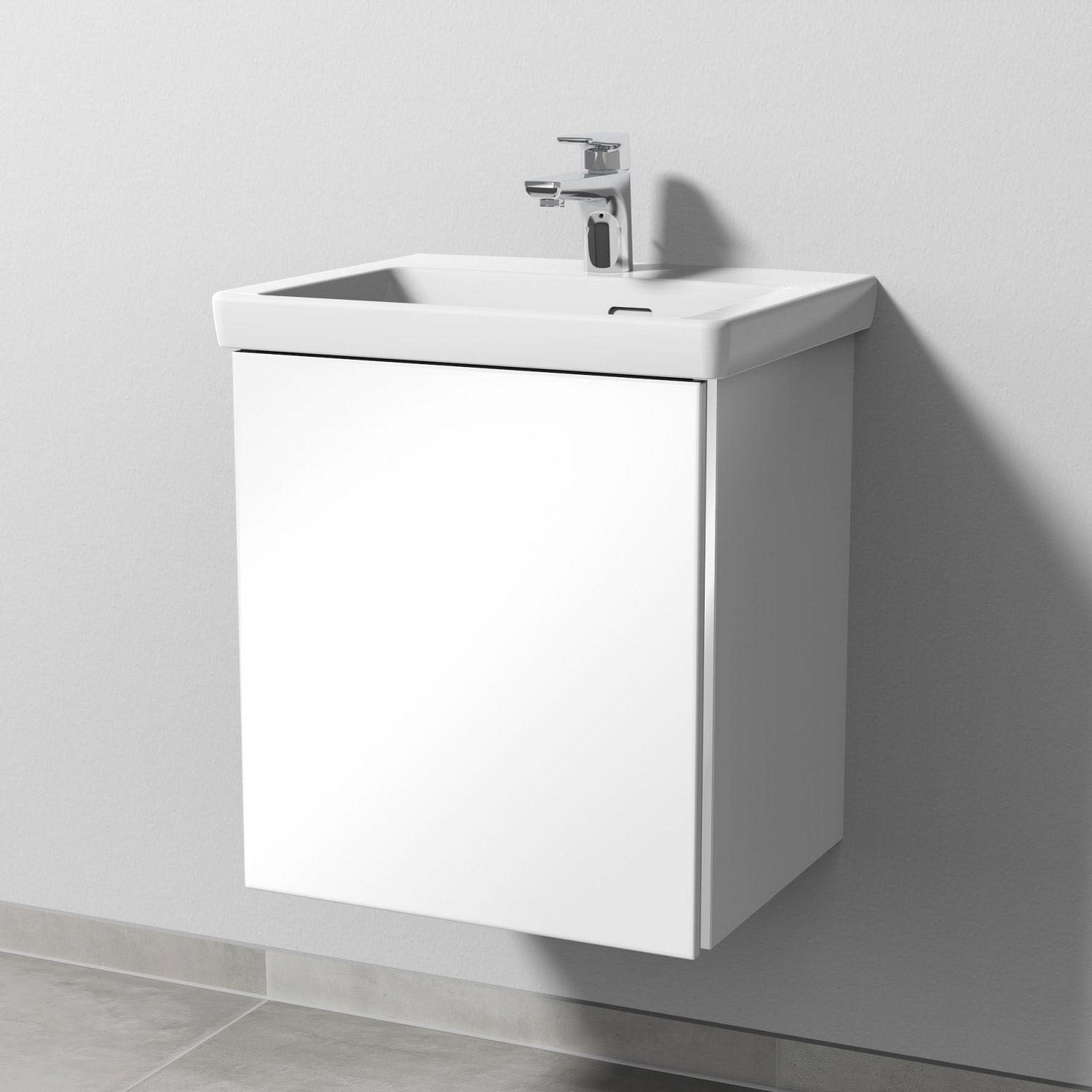 Sanipa 3way Waschtischunterbau für Keramik-Waschtisch Subway 3.0 50 cm, 1 Tür, Anschlag links, mit Griffleiste