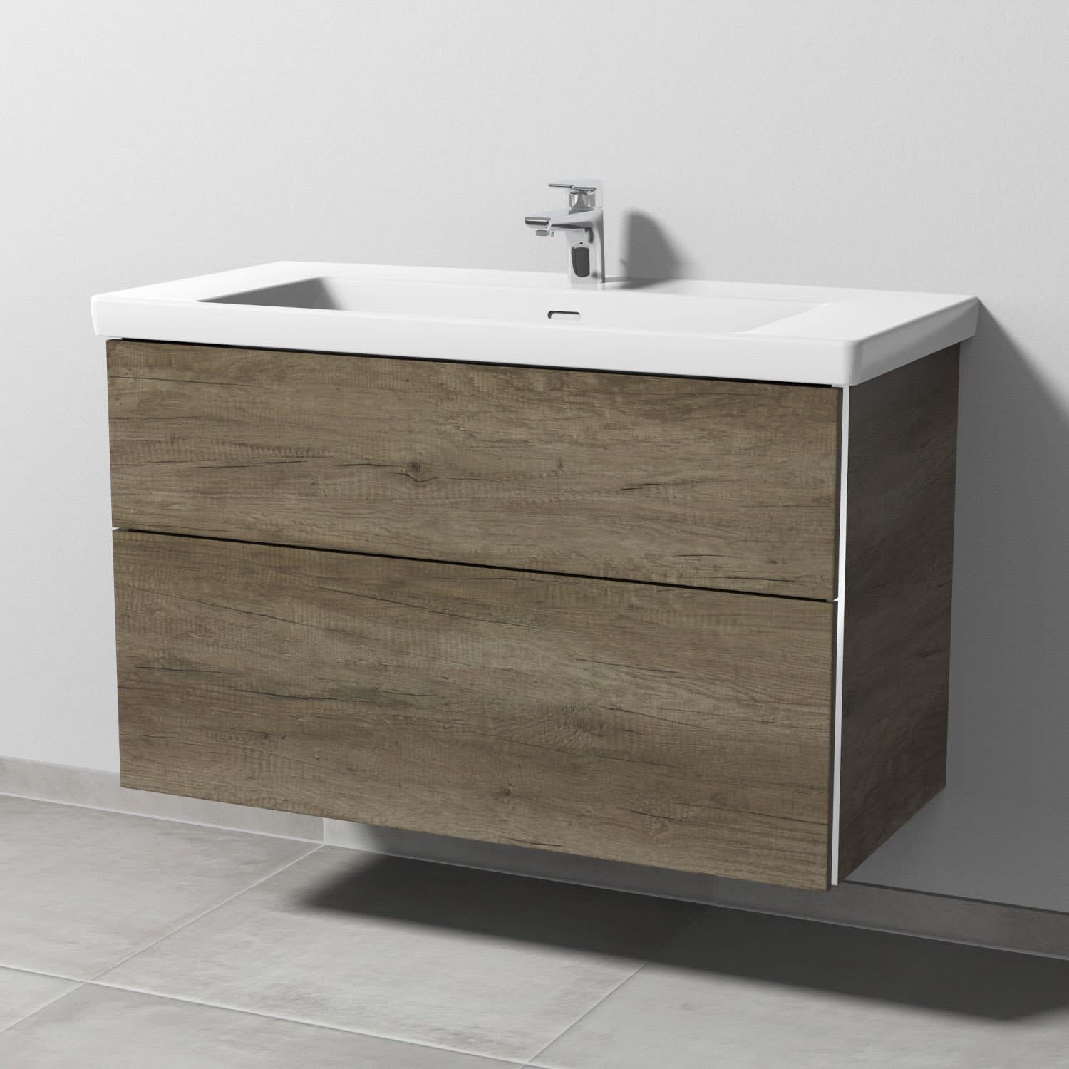 Sanipa 3way Waschtischunterbau für Keramik-Waschtisch Subway 3.0 100 cm, 2 Auszüge mit Griffleisten