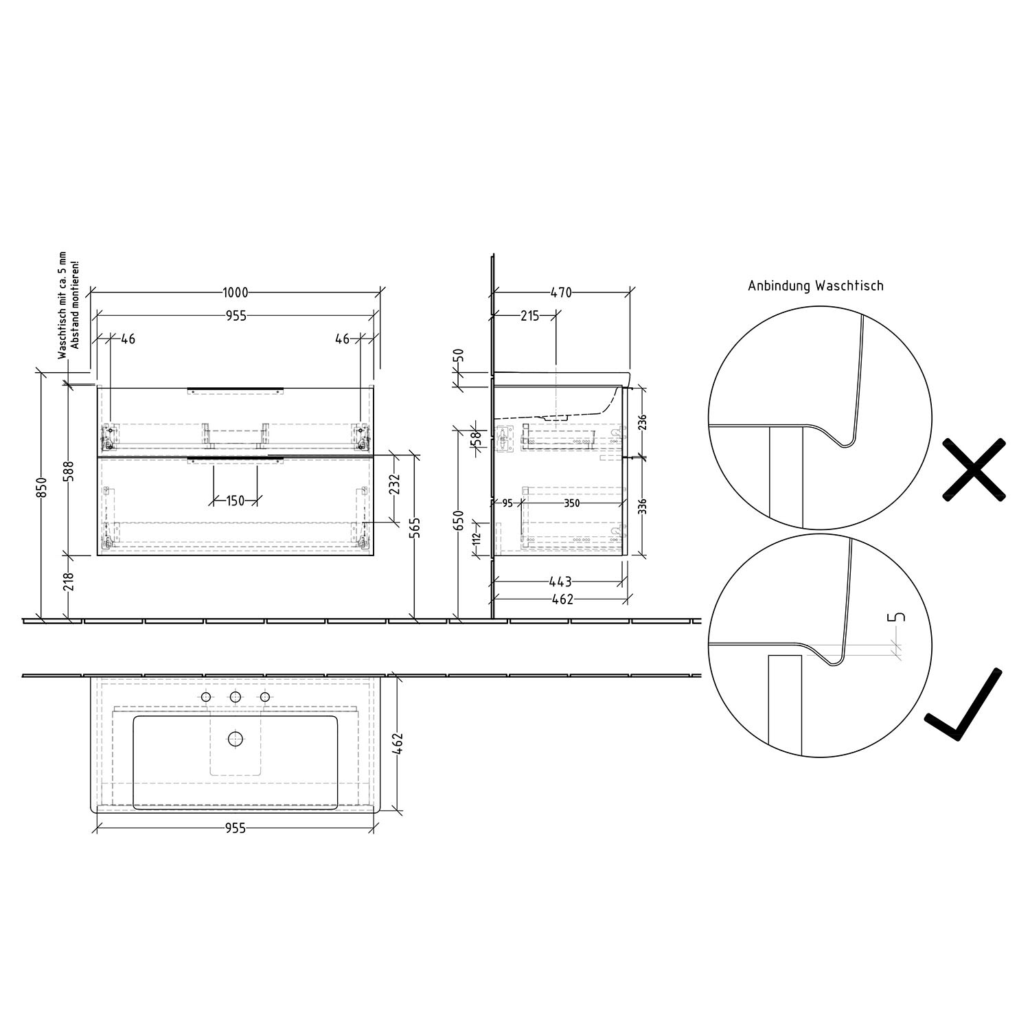 Sanipa 3way Waschtischunterbau für Keramik-Waschtisch Subway 3.0 100 cm, 2 Auszüge mit Aufsatzgriff