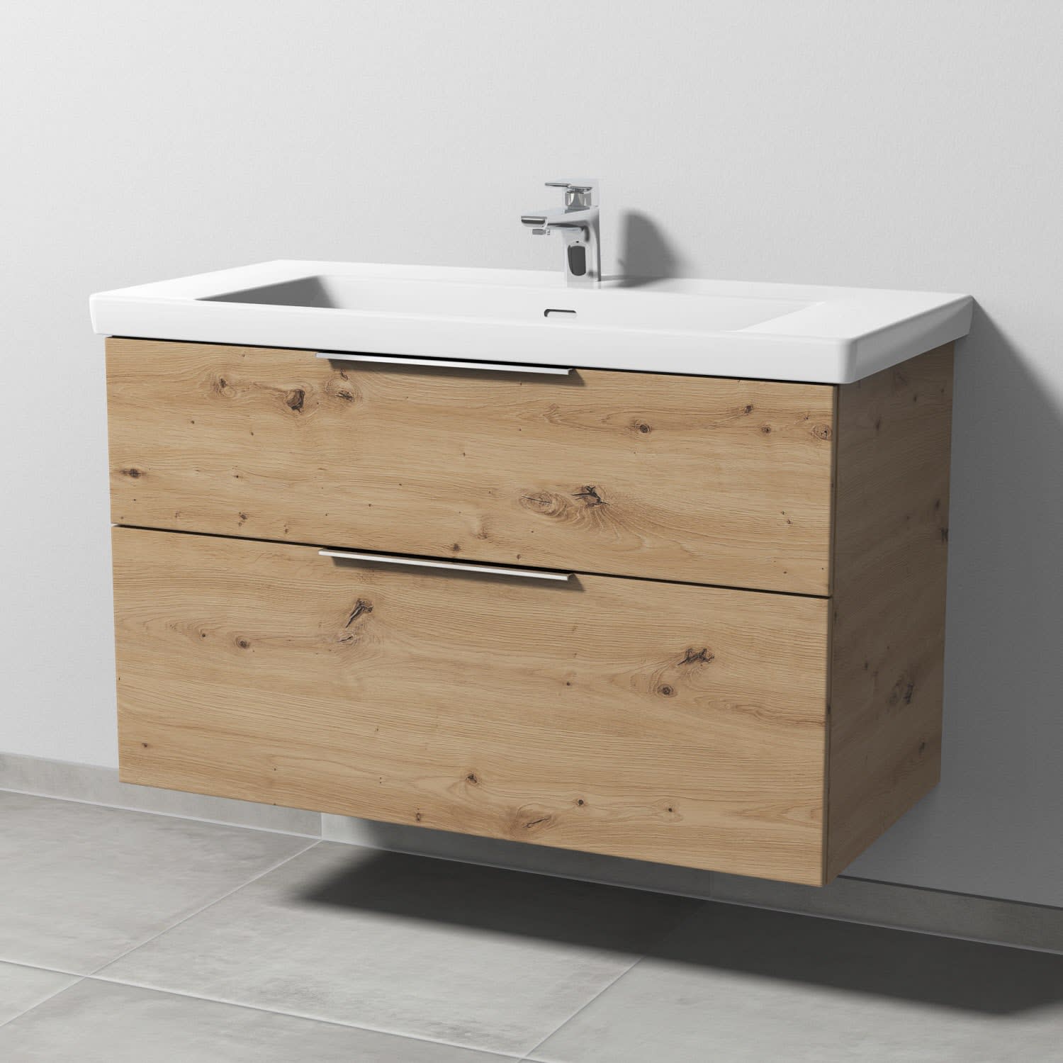 Sanipa 3way Waschtischunterbau für Keramik-Waschtisch Subway 3.0 100 cm, 2 Auszüge mit Aufsatzgriff