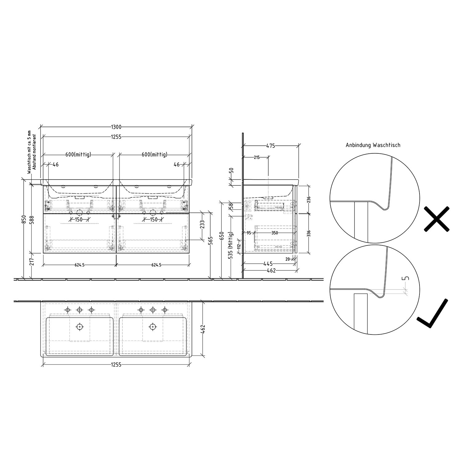 Sanipa 3way Waschtischunterbau für Keramik-Waschtisch Subway 3.0 130 cm für Doppelwaschtisch, 4 Auszüge mit Griffleisten