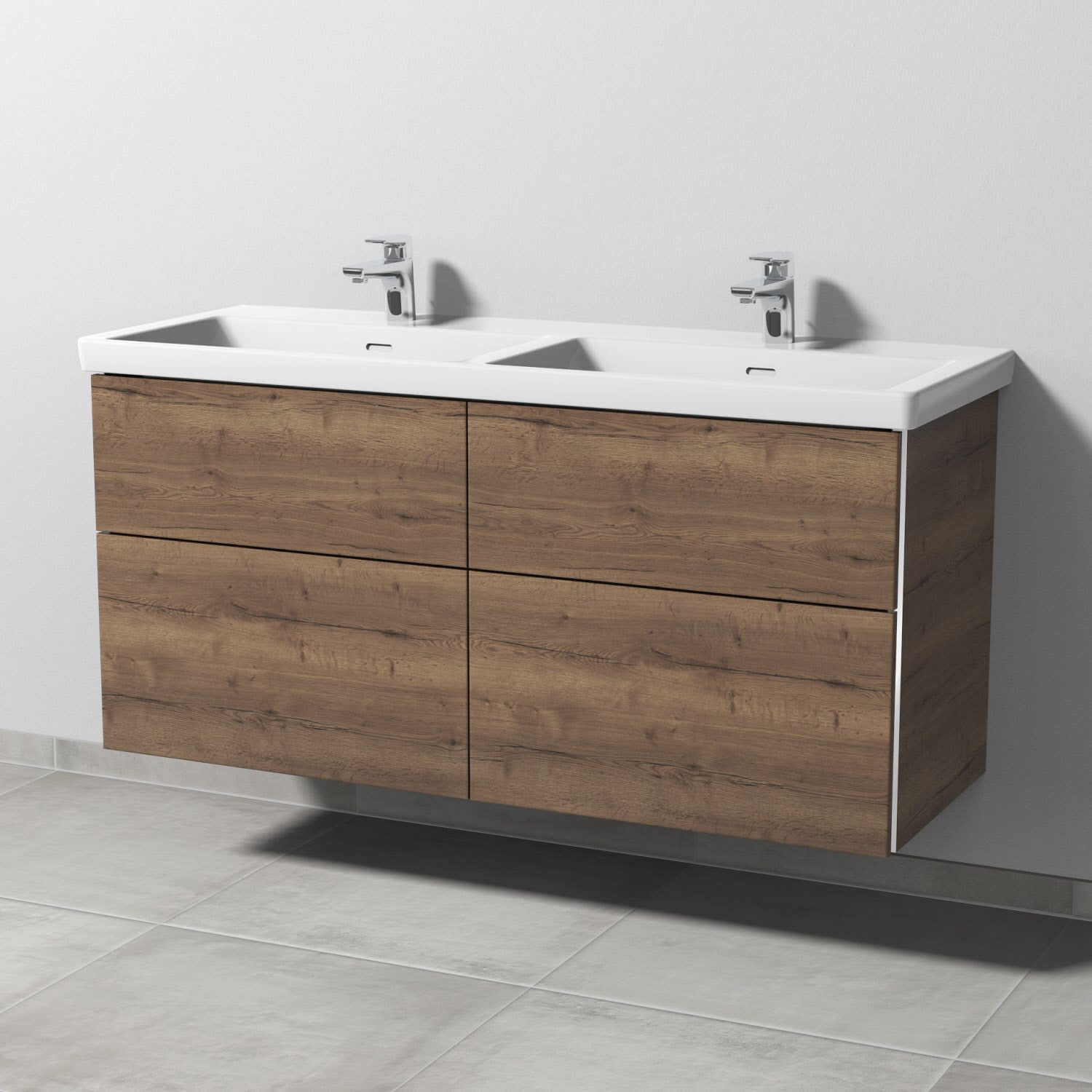 Sanipa 3way Waschtischunterbau für Keramik-Waschtisch Subway 3.0 130 cm für Doppelwaschtisch, 4 Auszüge mit Griffleisten