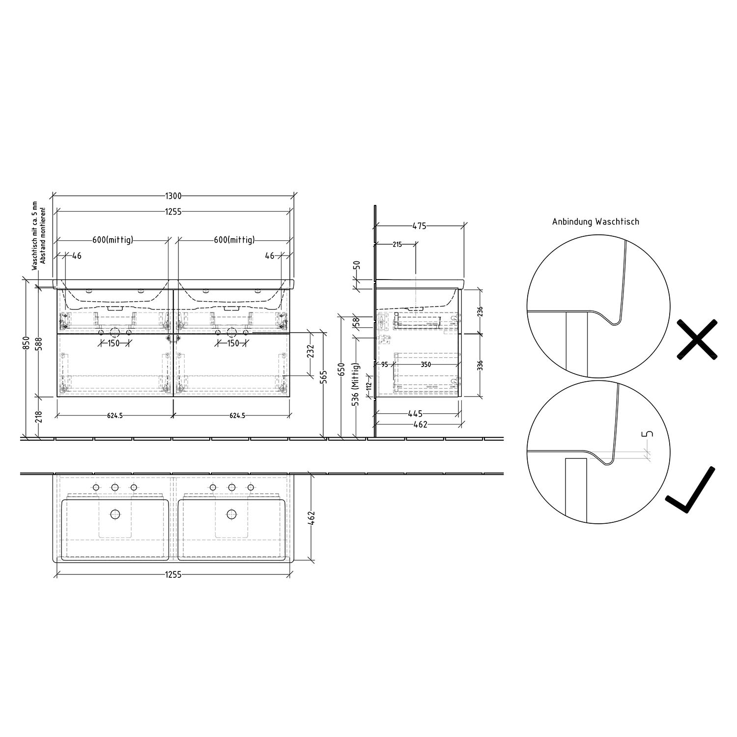 - obere Auszüge mit eckigem Siphonausschnitt