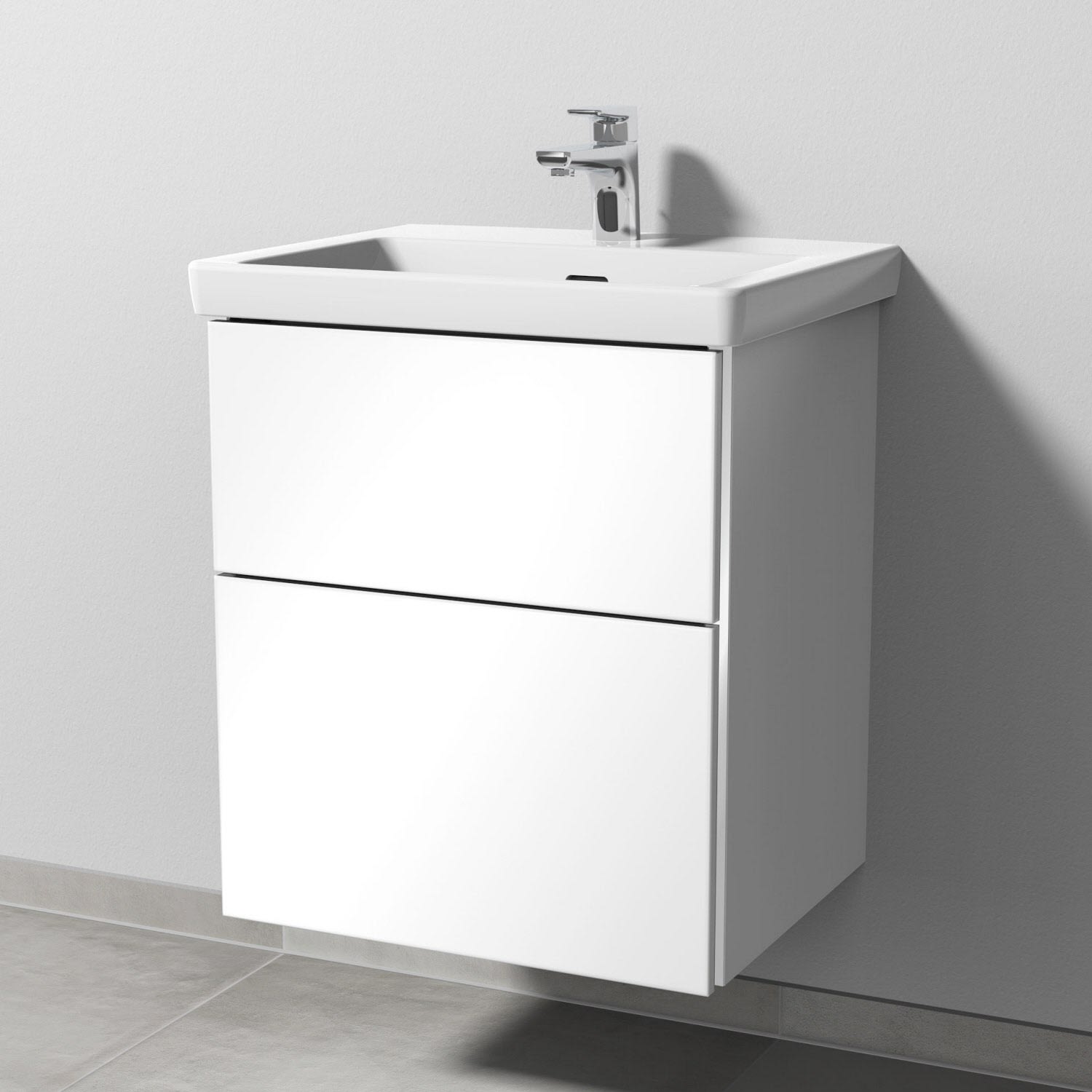 Sanipa 3way Waschtischunterbau für Keramik-Waschtisch Subway 3.0 55 cm, 2 Auszüge mit Griffleisten