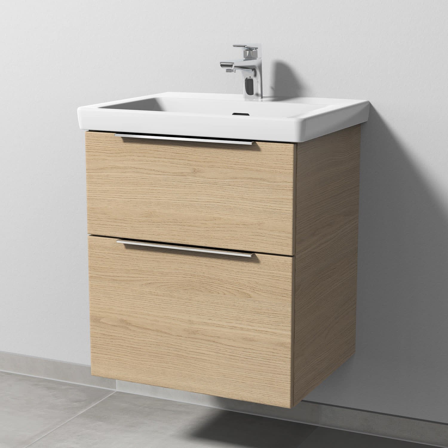 Sanipa 3way Waschtischunterbau für Keramik-Waschtisch Subway 3.0 55 cm, 2 Auszüge mit Aufsatzgriff