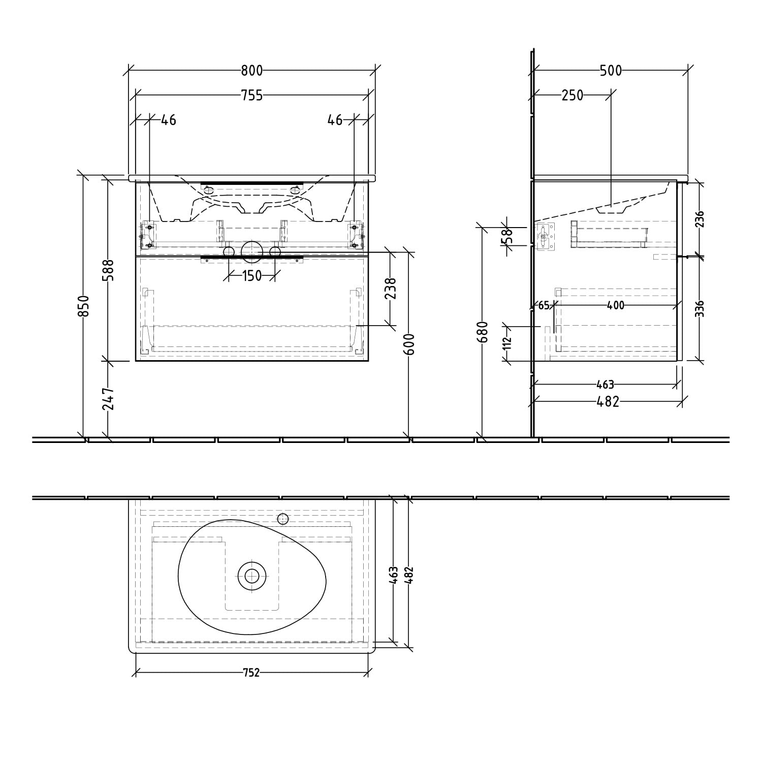 - Lieferumfang: Waschtischunterschrank (vormontiert), Befestigung