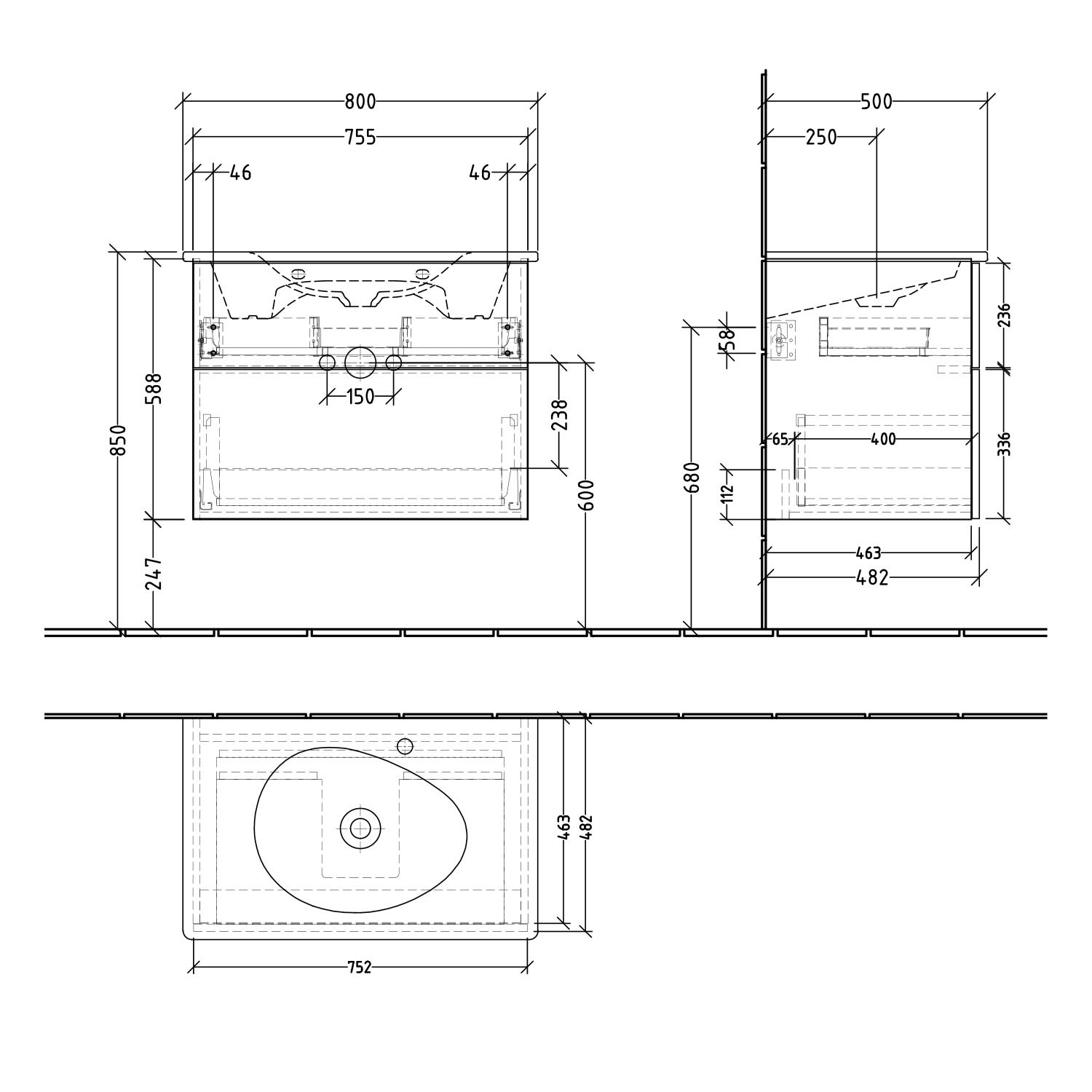 - Lieferumfang: Waschtischunterschrank (vormontiert), Befestigung
