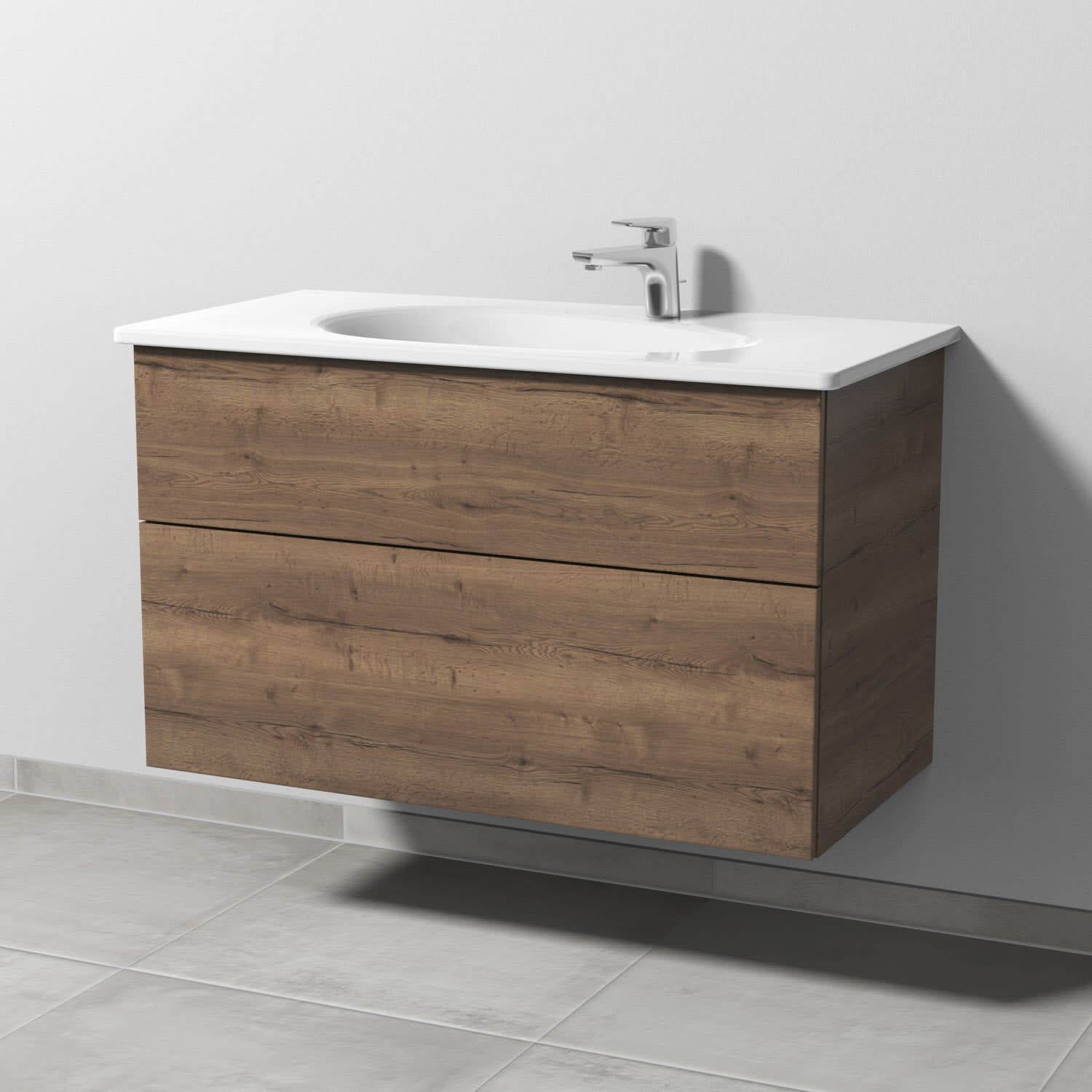 Sanipa 3way Waschtischunterbau für Keramik-Waschtisch Avento 100 cm, 2 Auszüge mit Griffleisten