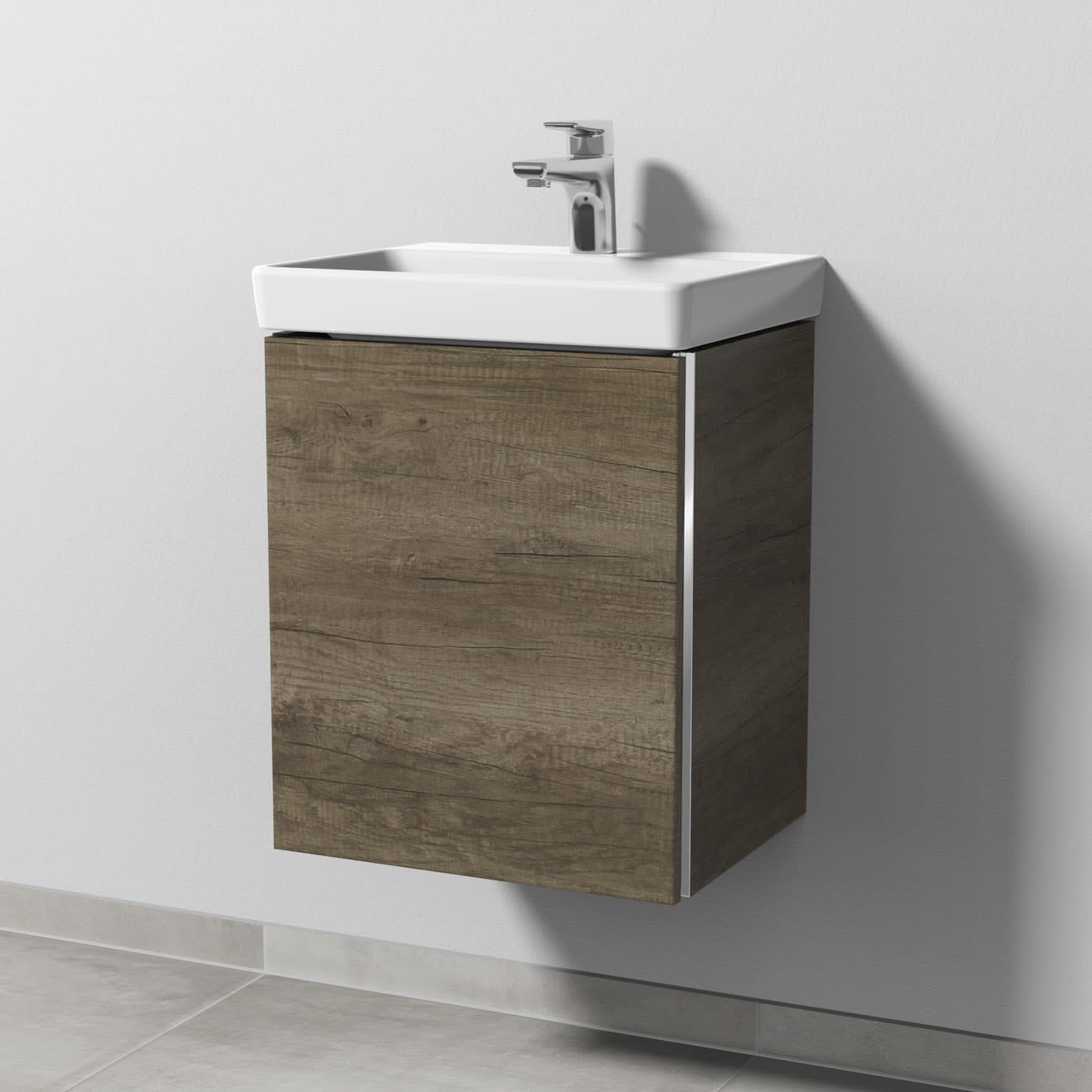 Sanipa 3way Waschtischunterbau für Keramik-Waschtisch Avento 45 cm, 1 Tür, Anschlag links, mit Griffleiste