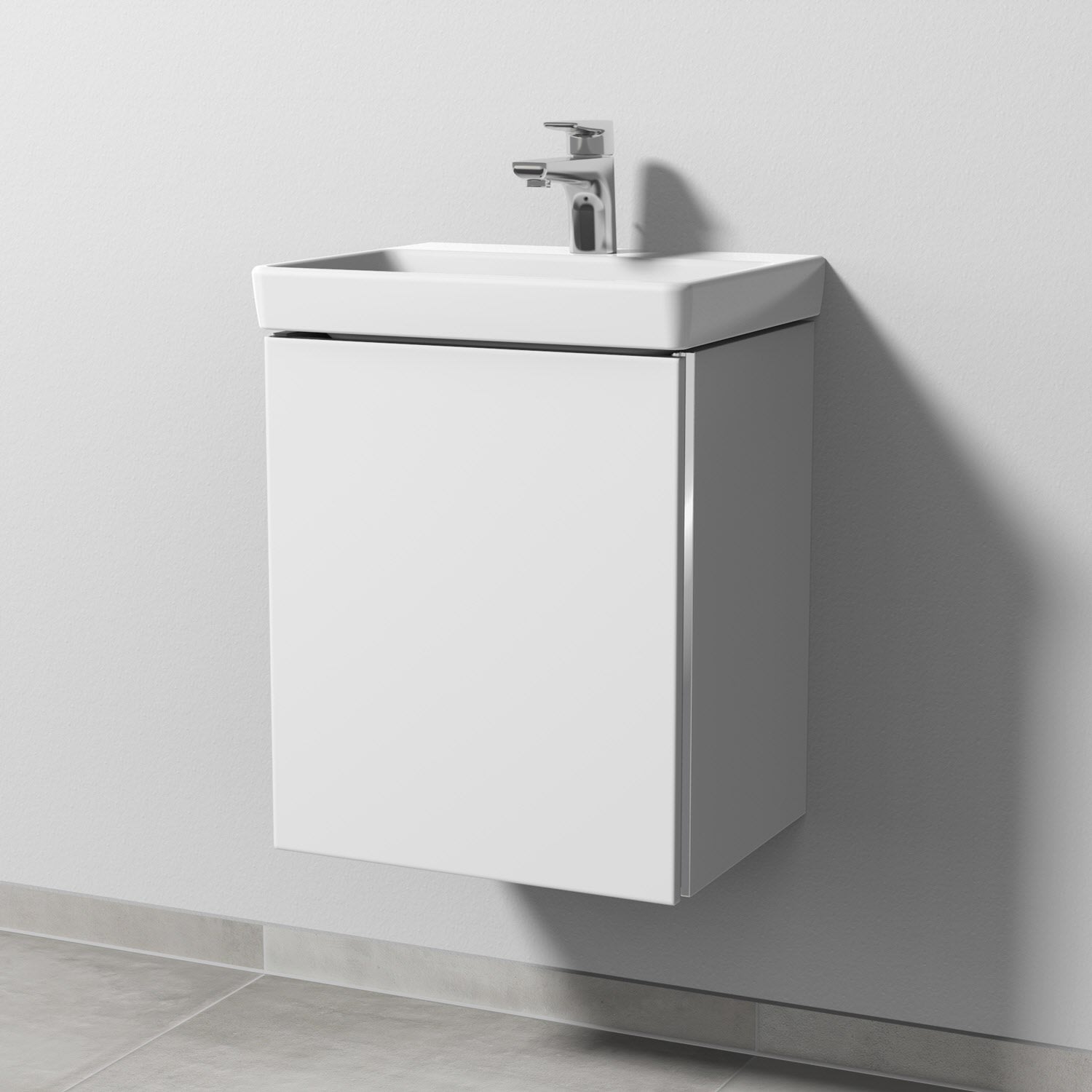 Sanipa 3way Waschtischunterbau für Keramik-Waschtisch Avento 45 cm, 1 Tür, Anschlag links, mit Griffleiste