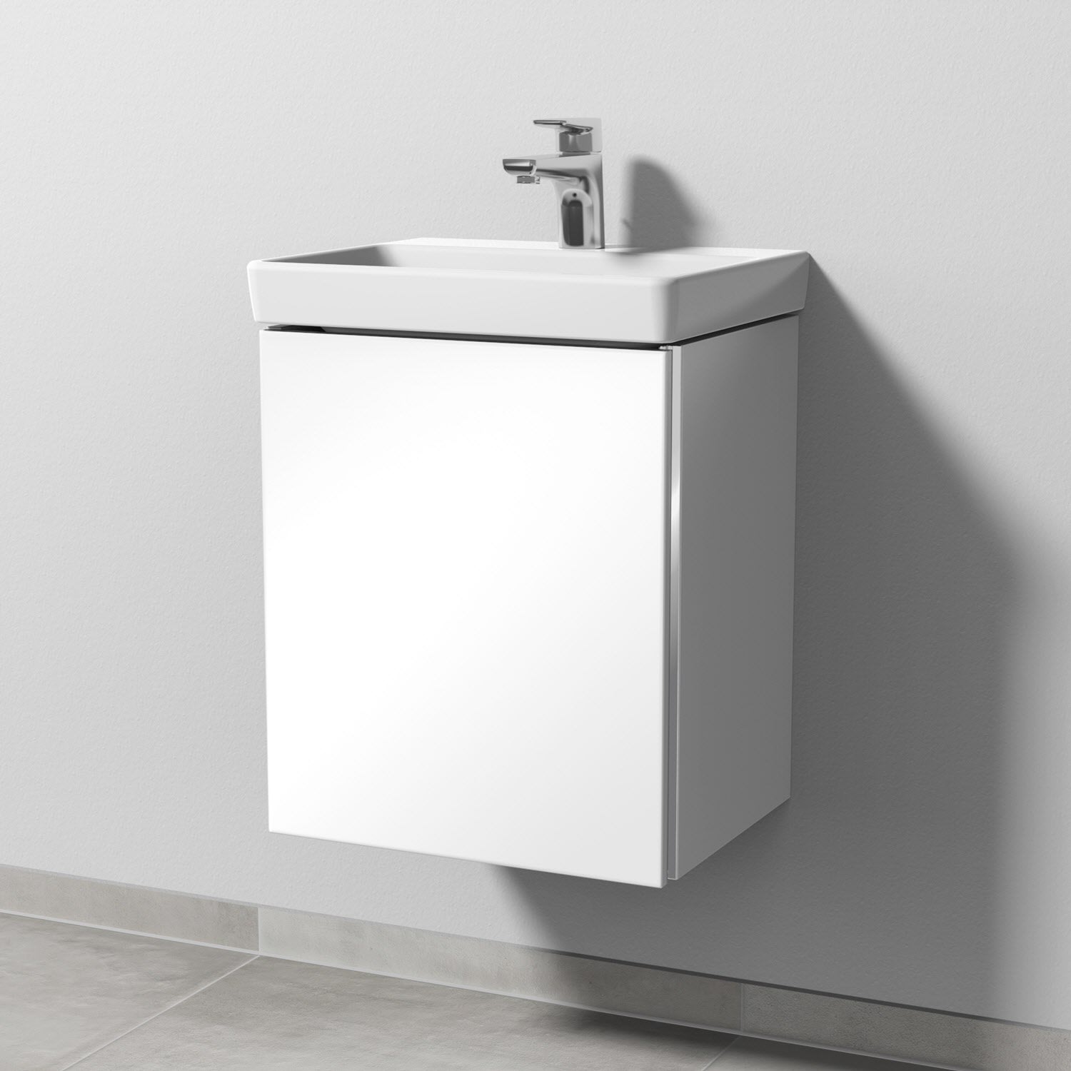 Sanipa 3way Waschtischunterbau für Keramik-Waschtisch Avento 45 cm, 1 Tür, Anschlag links, mit Griffleiste