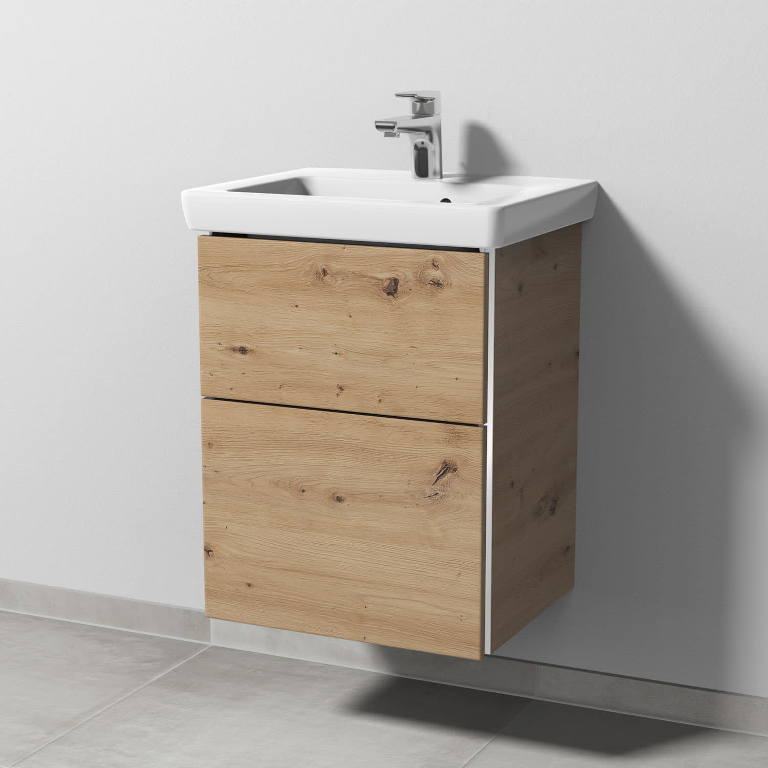 Sanipa 3way Waschtischunterbau für Keramik-Waschtisch Subway 2.0 50 cm, 2 Auszüge mit Griffleisten